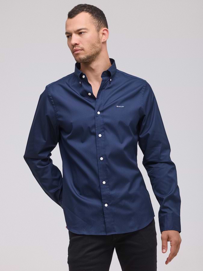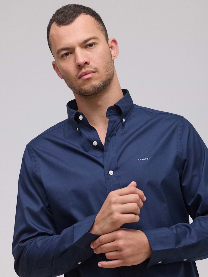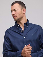 חולצה בגוון כחול נייבי מכופתרת  , בגזרת Slim Fit ובמראה קלאסי מנצח ממותג האופנה GANT. רקמת מגן מעטרת את חזית החולצה ומעניקה לה מראה ייחודי למותג.