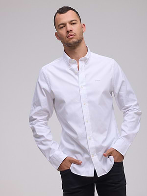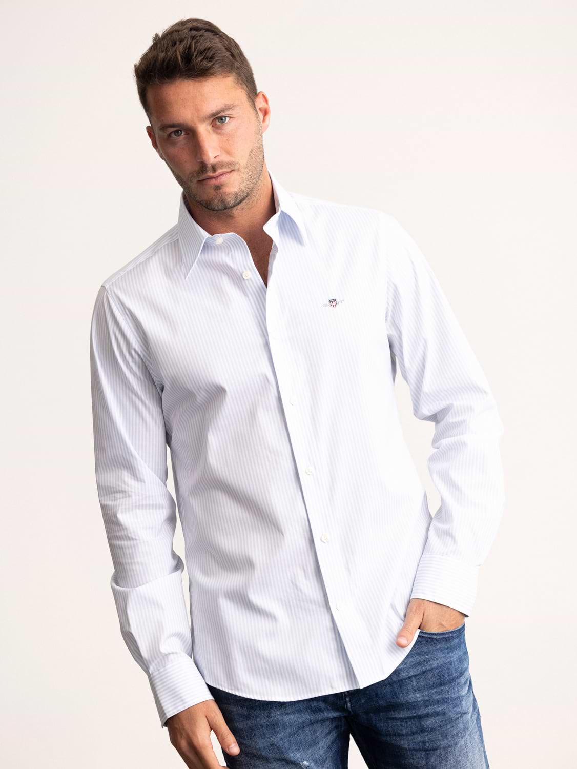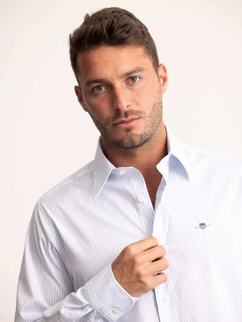 חולצה מכופתרת פסים לבן תכלת slim strech white blue stripe GANT