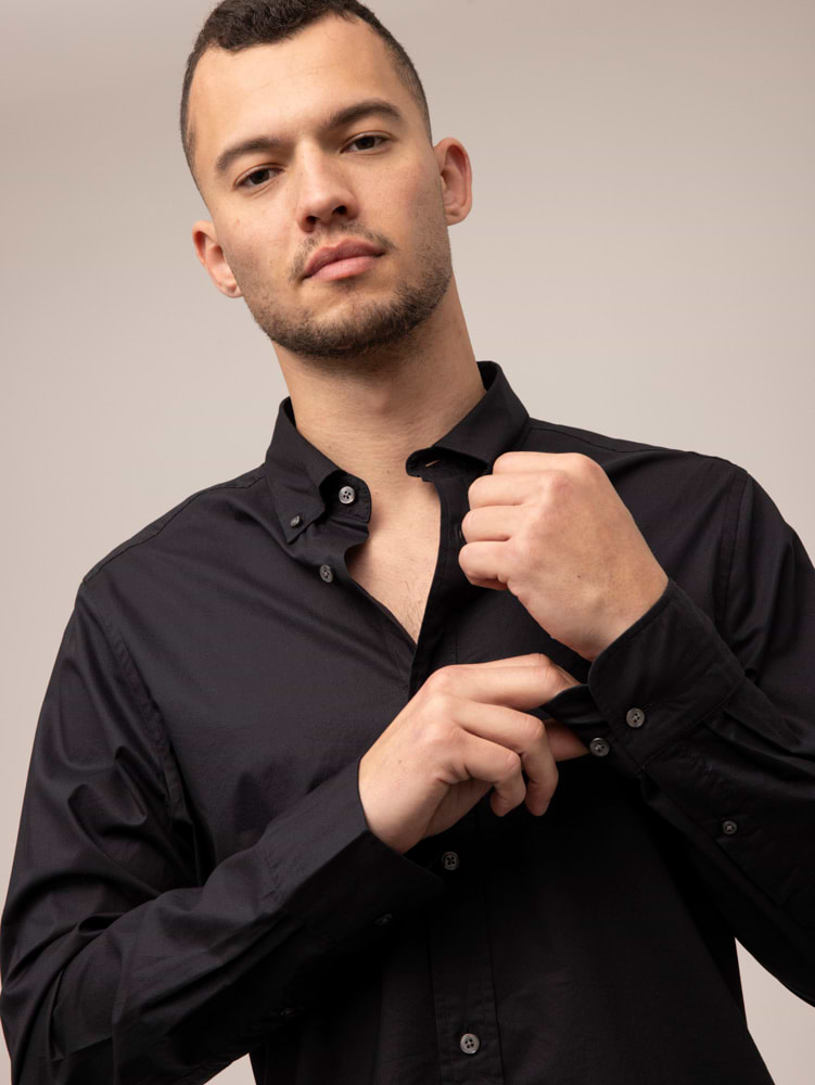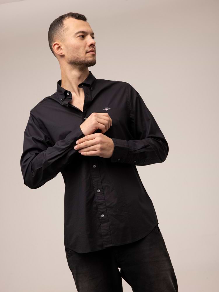 חולצה מכופתרת black GANT poplin Slim Fit צבע שחור