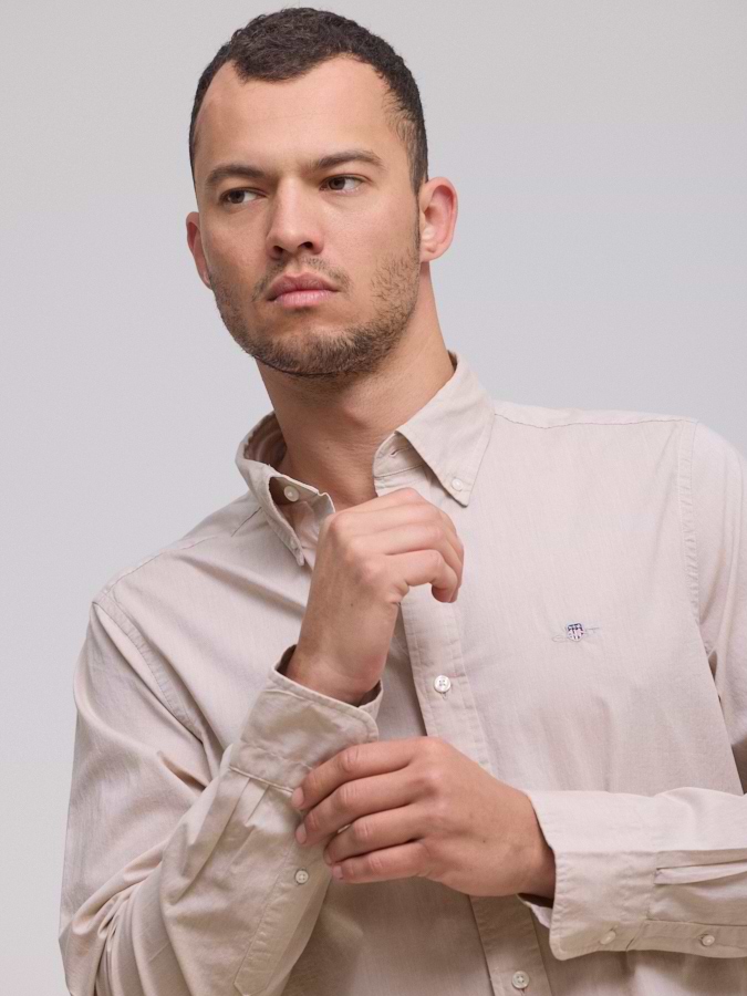 חולצה מכופתרת light beige poplin GANT Slim Fit בז’ עדין
