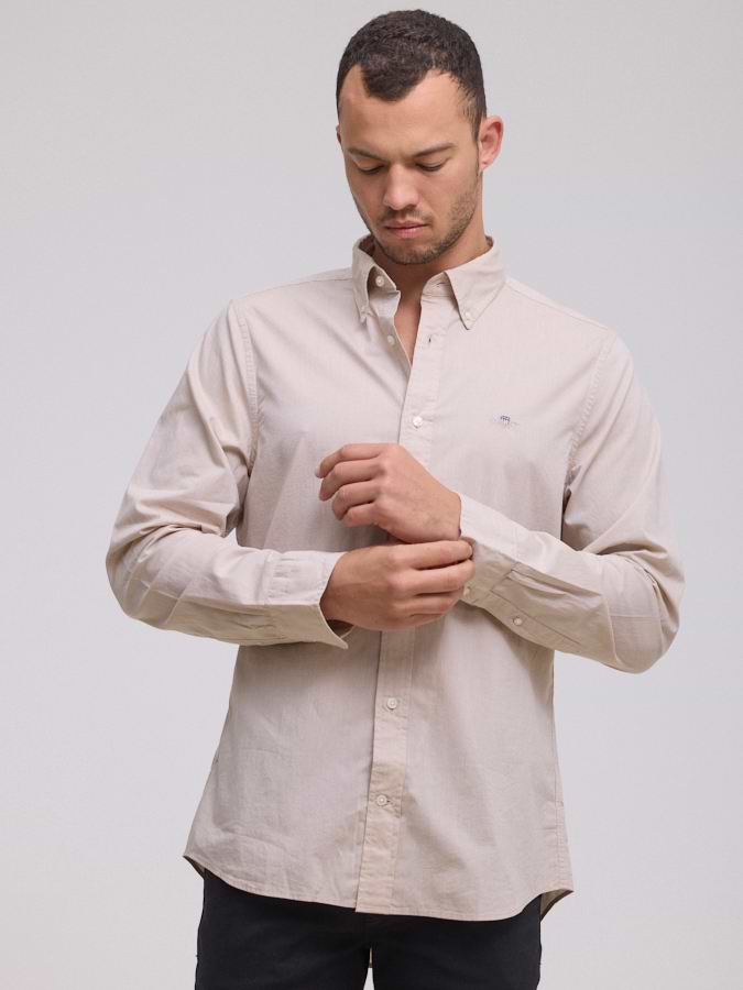 חולצה מכופתרת light beige poplin GANT Slim Fit בז' עדין