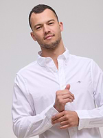 חולצה בגוון לבן מכופתרת  , בגזרת Slim Fit ובמראה קלאסי מנצח ממותג האופנה GANT. רקמת מגן מעטרת את חזית החולצה ומעניקה לה מראה ייחודי למותג.
