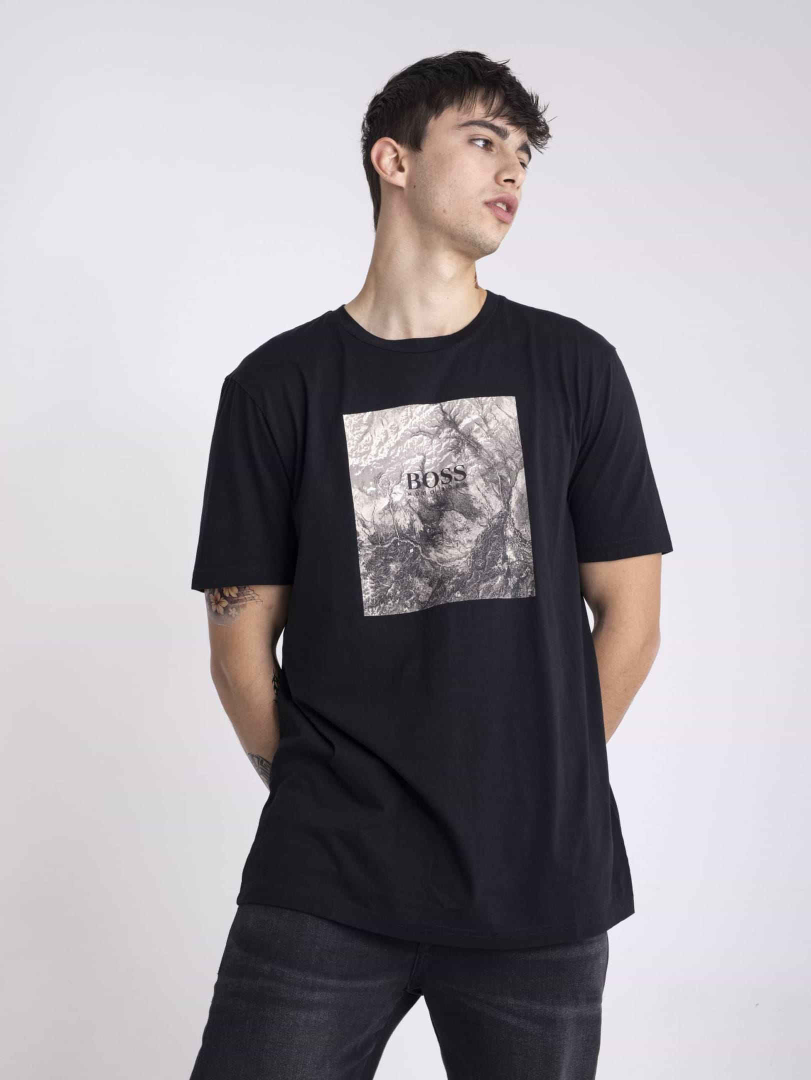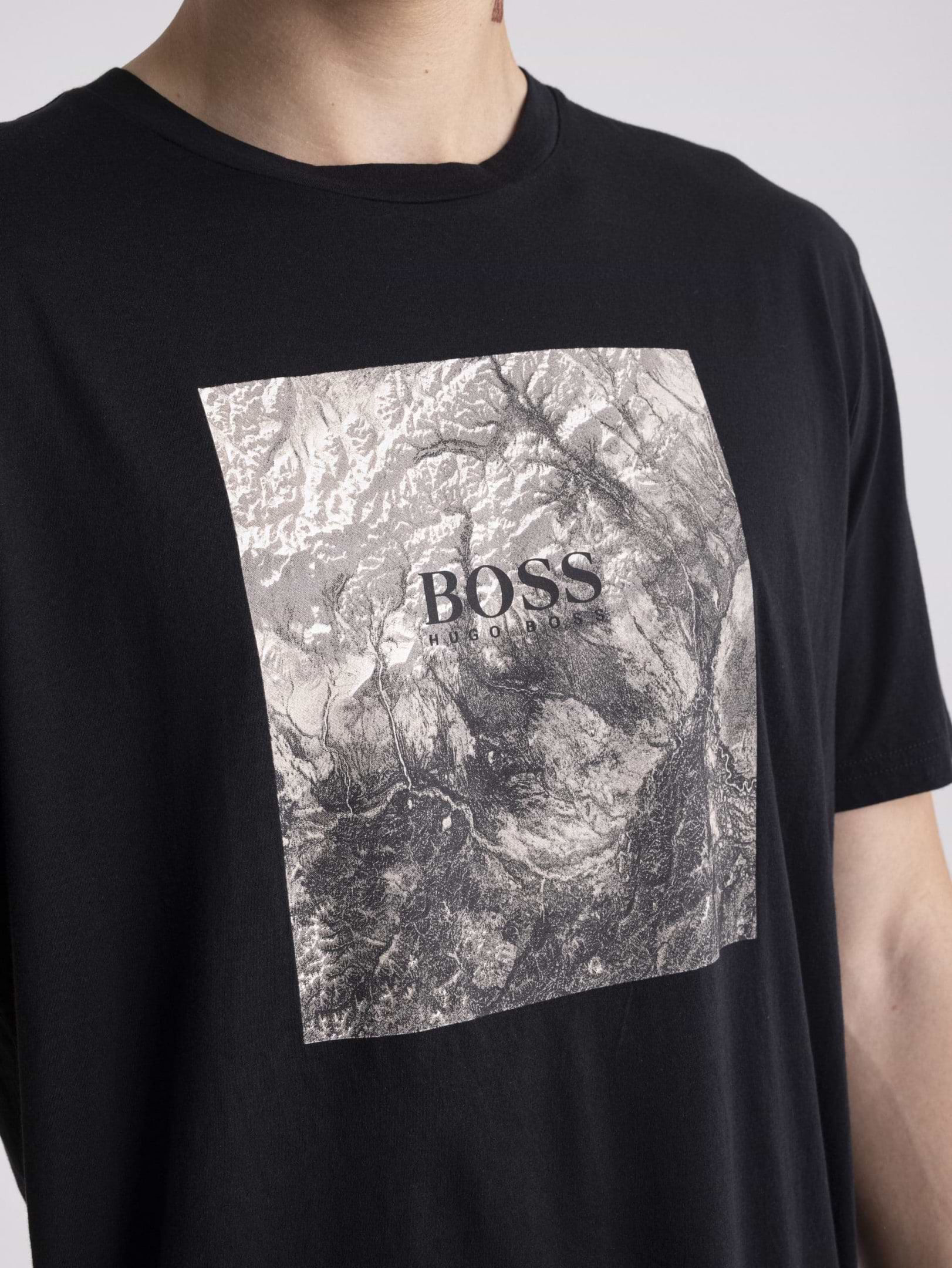 טי שירט Hugo Boss Mixed Print In Washed שחורה