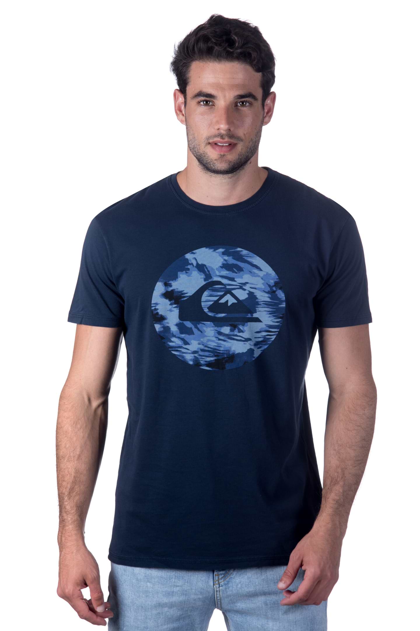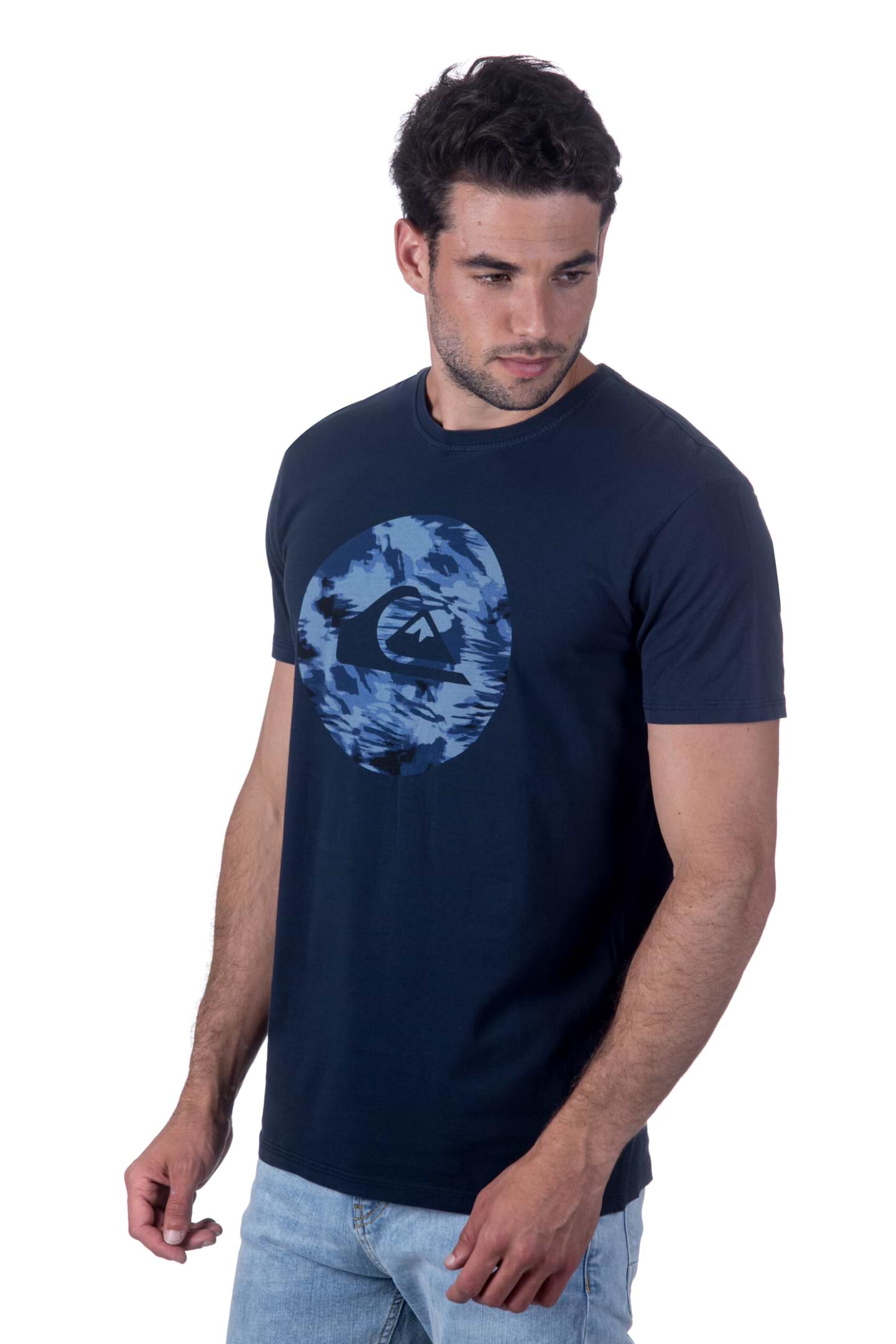 טי שירט ממותג האקסטרים Quicksilver בצבע כחול נייבי. חזית הטי מאופיינת בפרינט לוגו של המותג. טי שירט בעלת צללית מחמיאה לגוף ובאווירה קיצית.