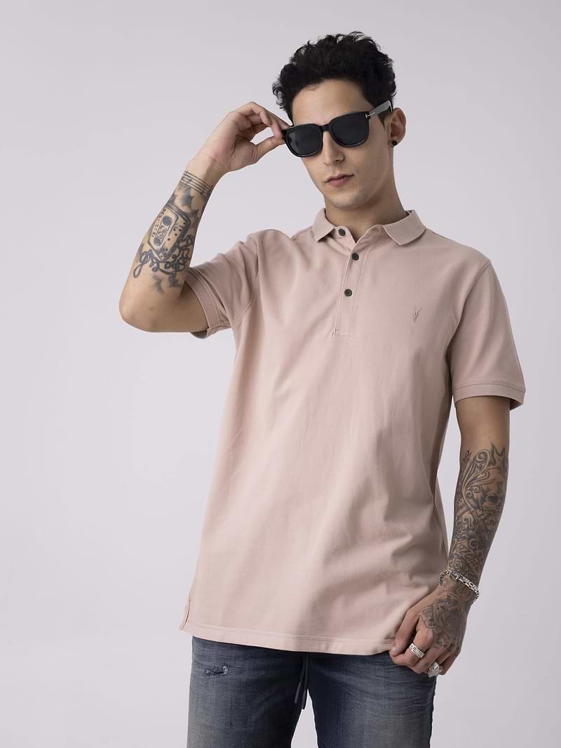 חולצת פולו קלאסית ממותג האופנה All Saints בגוון ורוד. החולצה מאופיינת ב 3 כפתורים, ריקמת לוגו בחזית.