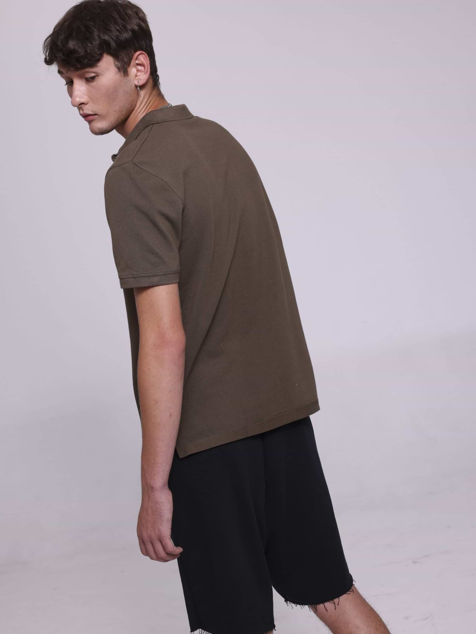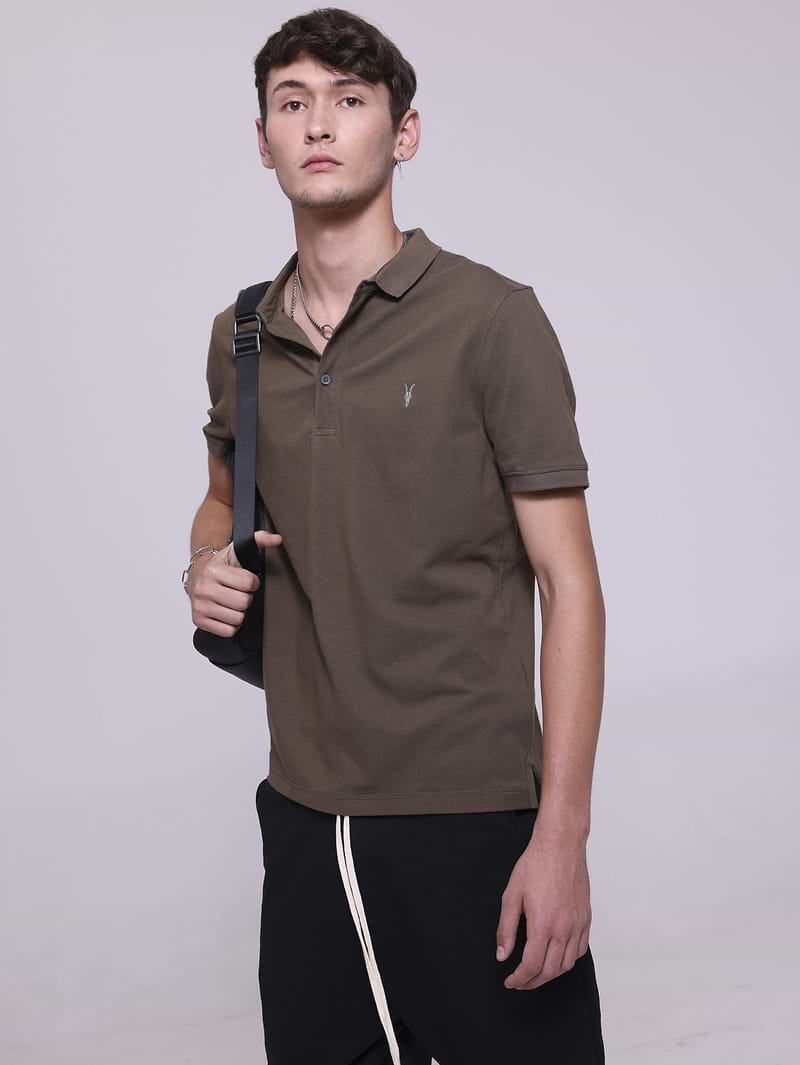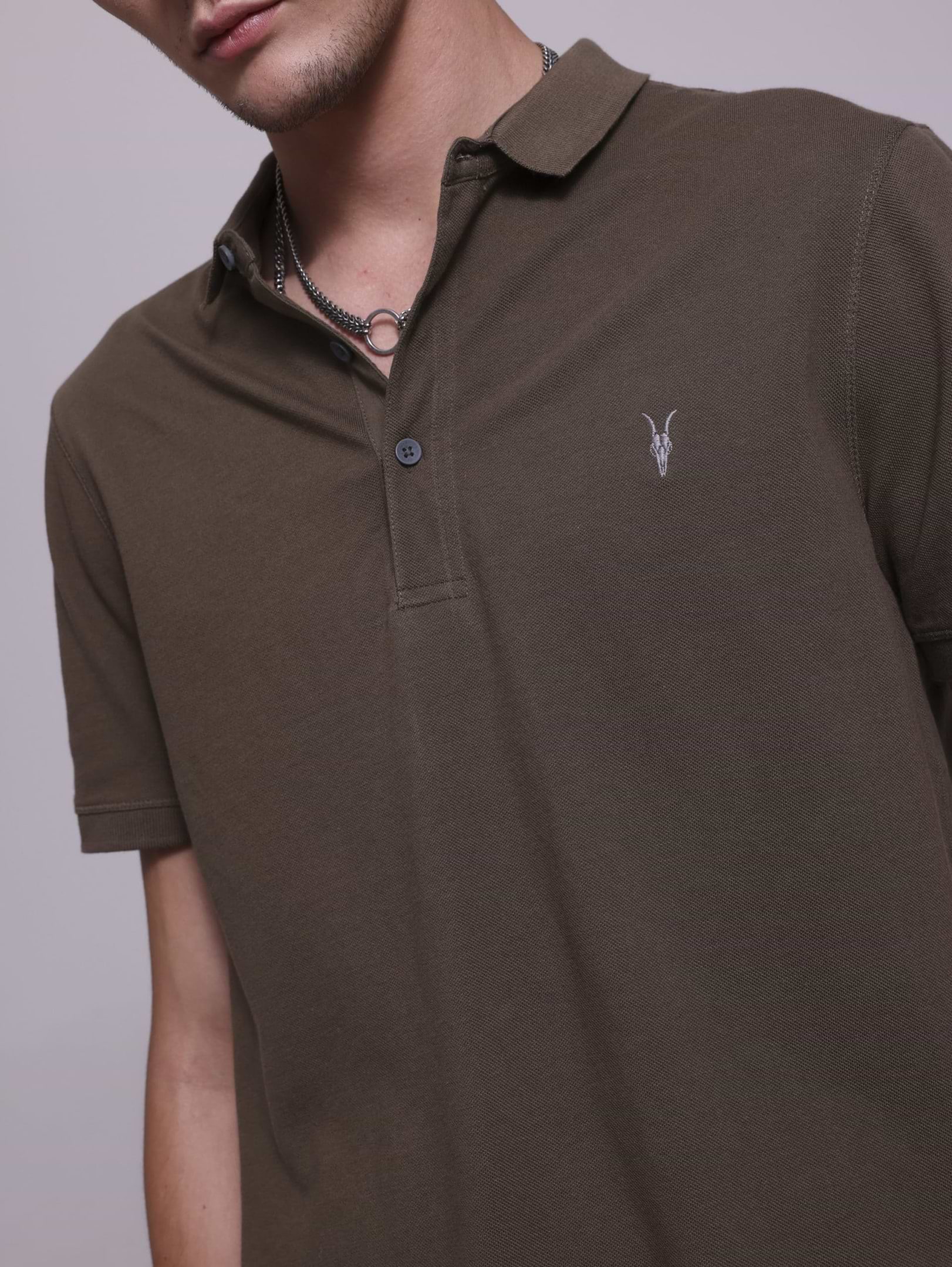 חולצת פולו קלאסית ממותג האופנה All Saints מקולקציית Orlando בגוון חאקי כהה. החולצה מאופיינת ב 3 כפתורים, 100% כותנה אוורירית ורקמת לוגו בחזית.