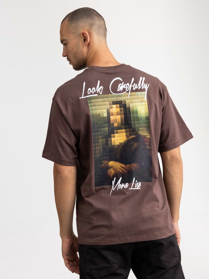 2512 . brown mona lisa oversize t shirt חולצה בצבע חום הדפס מונה ליזה