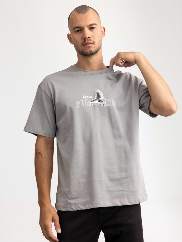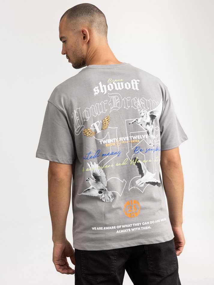 2512 . light gray bird oversize t shirt חולצה בצבע אפור בטון בהיר יונה בחזית