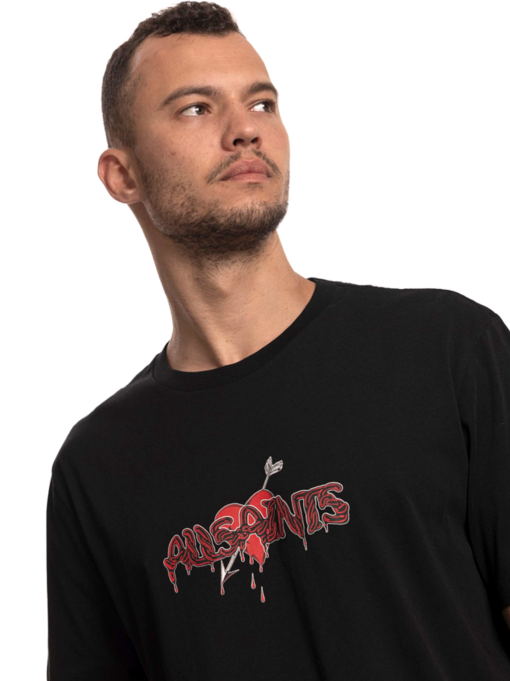 ALLSAINTS red black logo חולצה בצבע שחור הדפס קדימה לוגו המותג עם לב