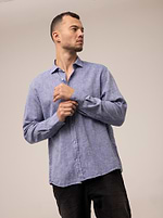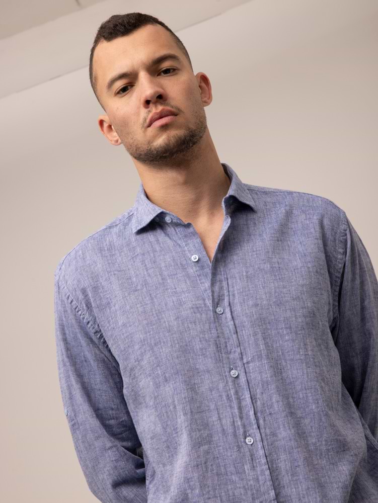 BGS blue shirt linen חולצת פשתן צבע כחול עמוק
