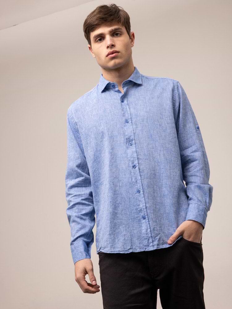 BGS light jeans blue shirt linen חולצת פשתן צבע כחול גינס בהיר
