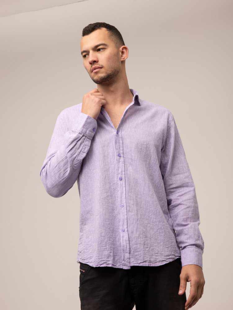 BGS light purple shirt linen חולצת פשתן צבע סגול