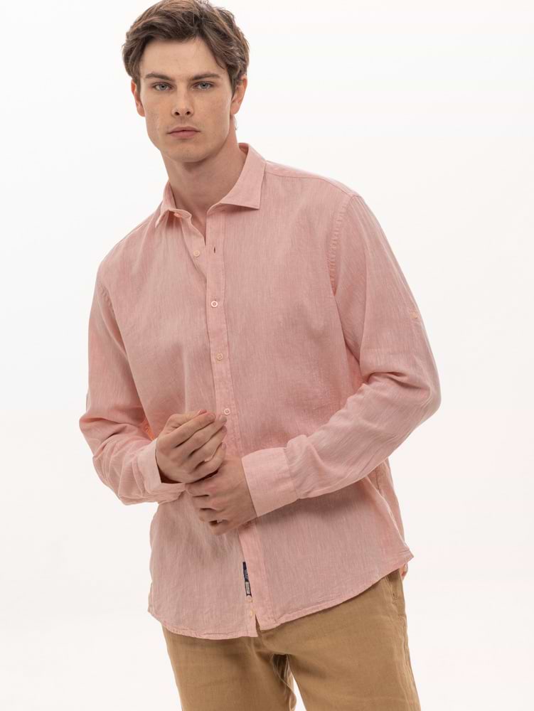 BGS shirt linen חולצת פשתן צבע פודרה ורוד עדין