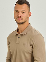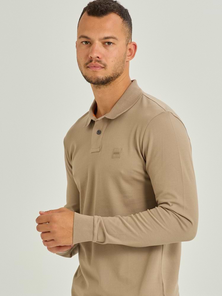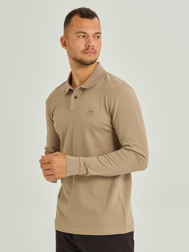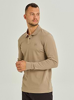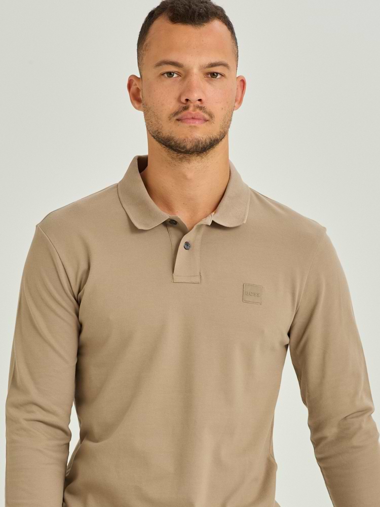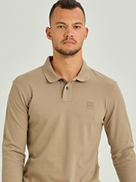 BOSS polo long sleeve dark beige פולו שרוול ארוך בצבע בז’ כהה לוגו צידי