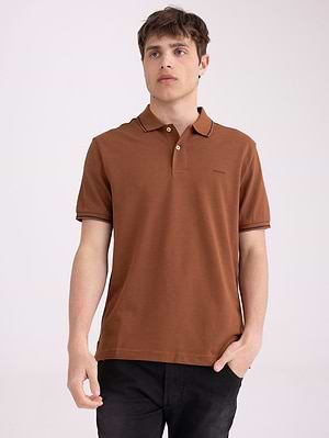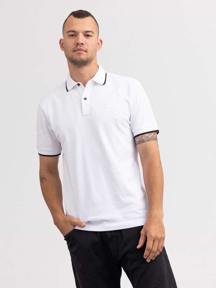 BOSS polo white black חולצת פולו בצבע לבן עם פס שחור בצווארון