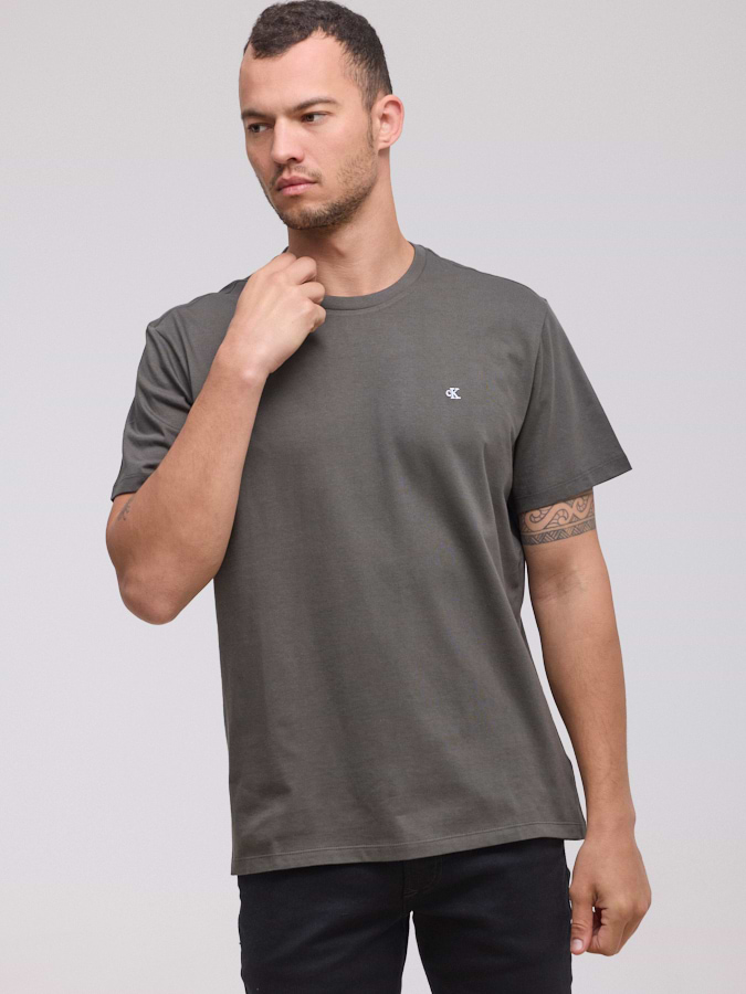 CALVIN KLEIN logo t shirt חולצה בייסיק צבע ירוק חום לוגו קטן