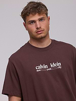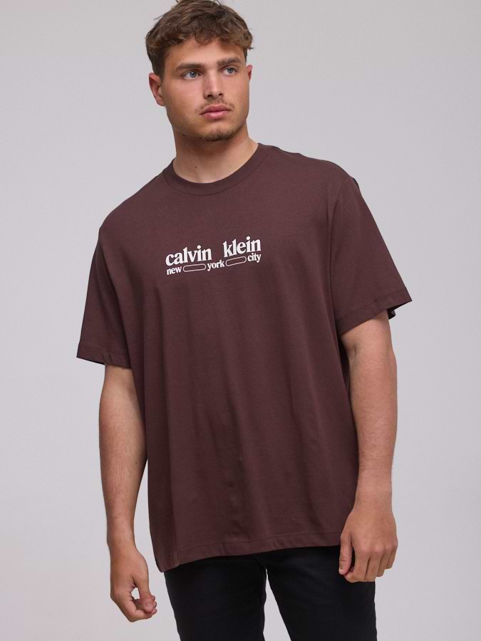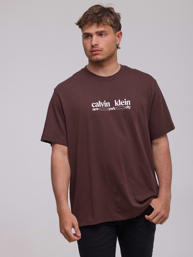 CALVIN KLEIN logo t shirt חולצה בצבע חום עם לוגו המותג במרכז בולט