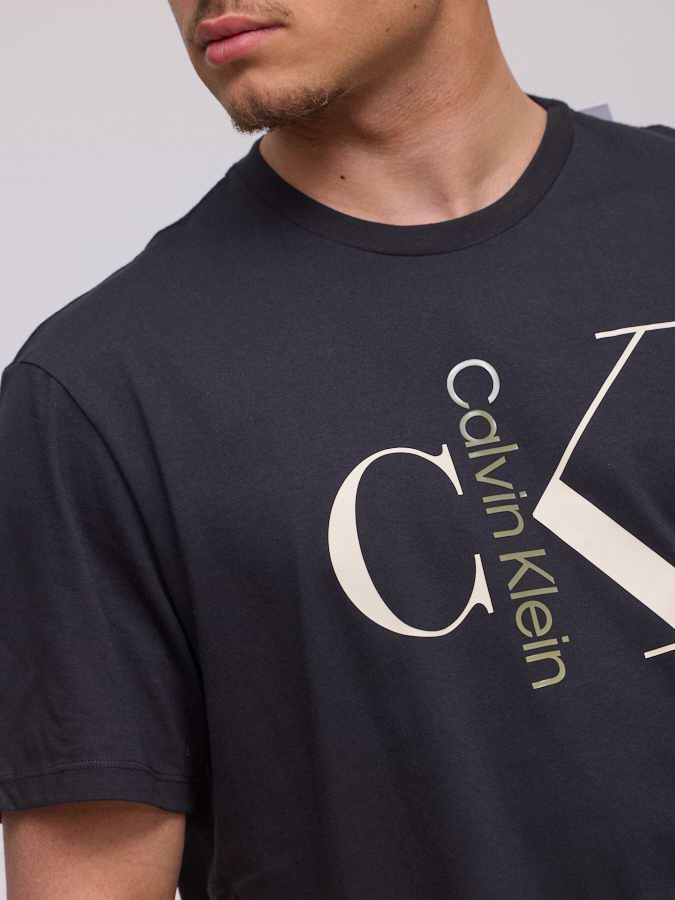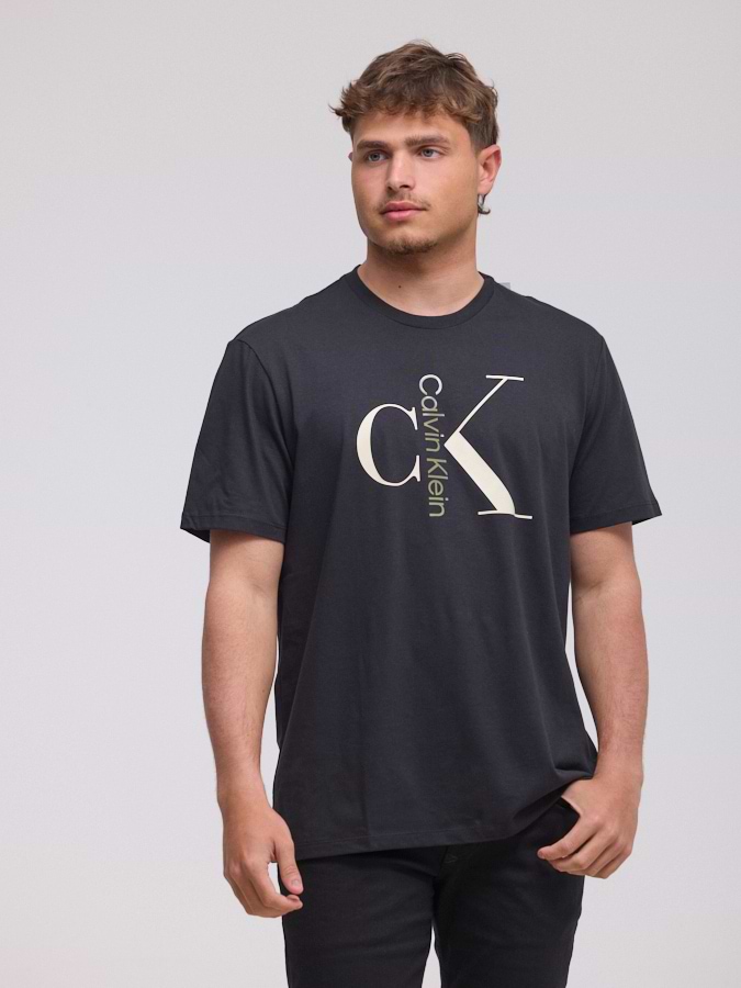 CALVIN KLEIN logo t shirt חולצה בצבע שחור לוגו במרכז CK