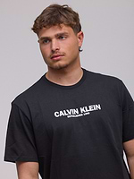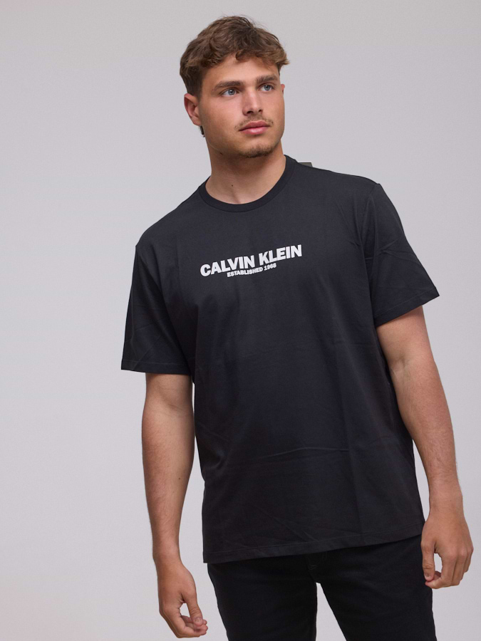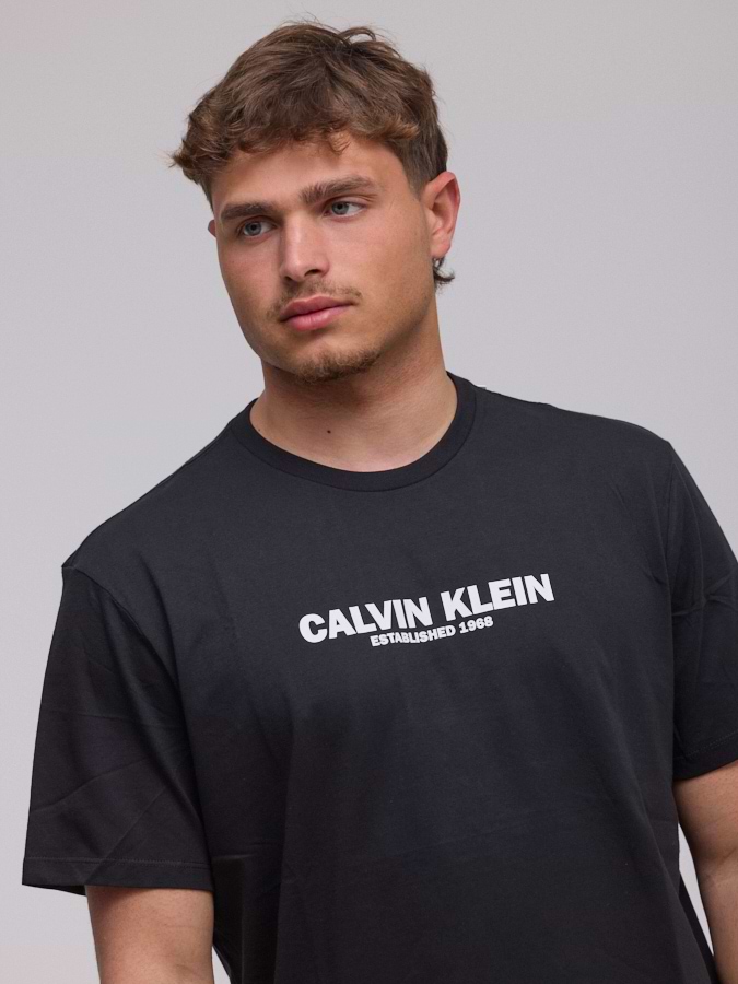 CALVIN KLEIN logo t shirt חולצה בצבע שחור עם לוגו המותג במרכז בולט