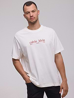 CALVIN KLEIN logo t shirt חולצה בצבע שמנת עם לוגו המותג במרכז בולט כתום