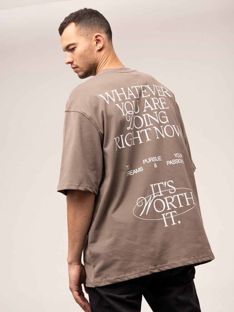 CATCH brown t shirt print oversize חולצה בצבע חום הדפס חזית ואחורה אוברסייז