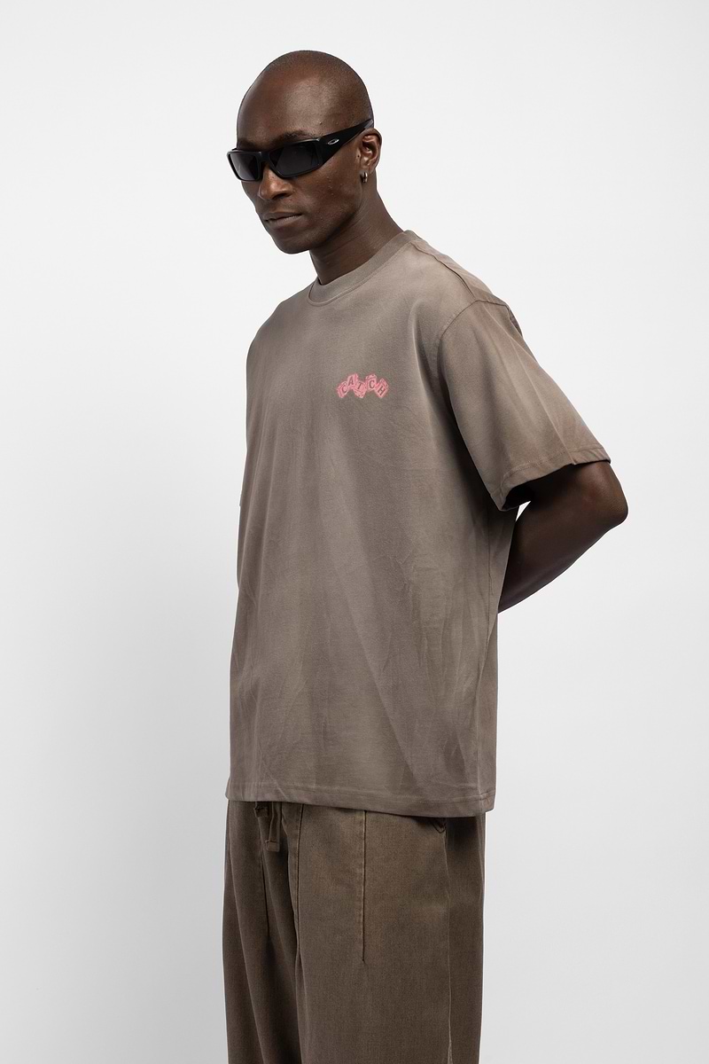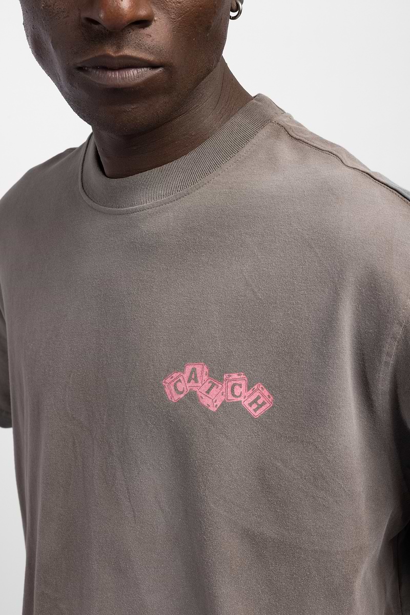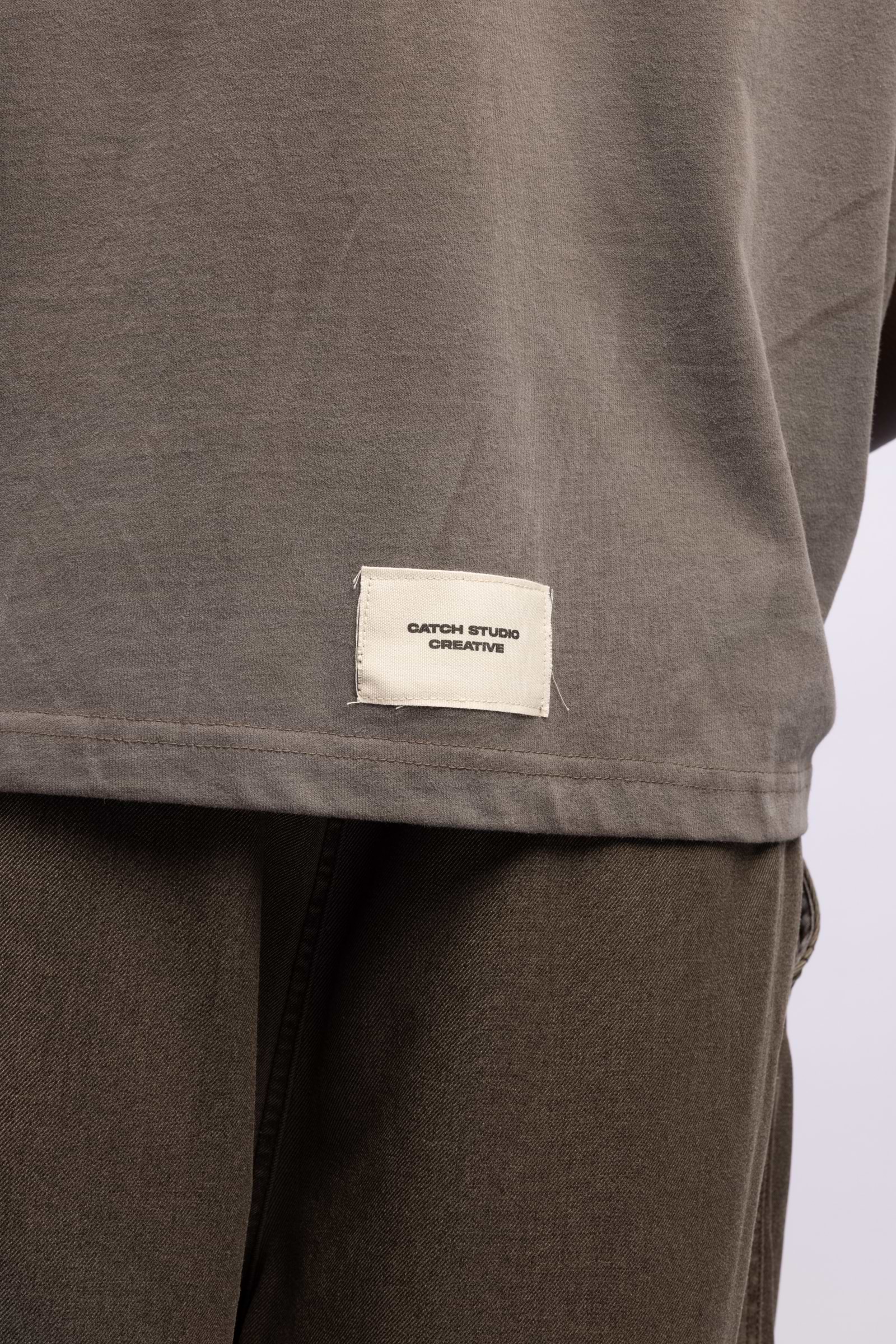 CATCH small logo t shirt חולצה בצבע חום עם לוגו צידי קוביות ושם המותג