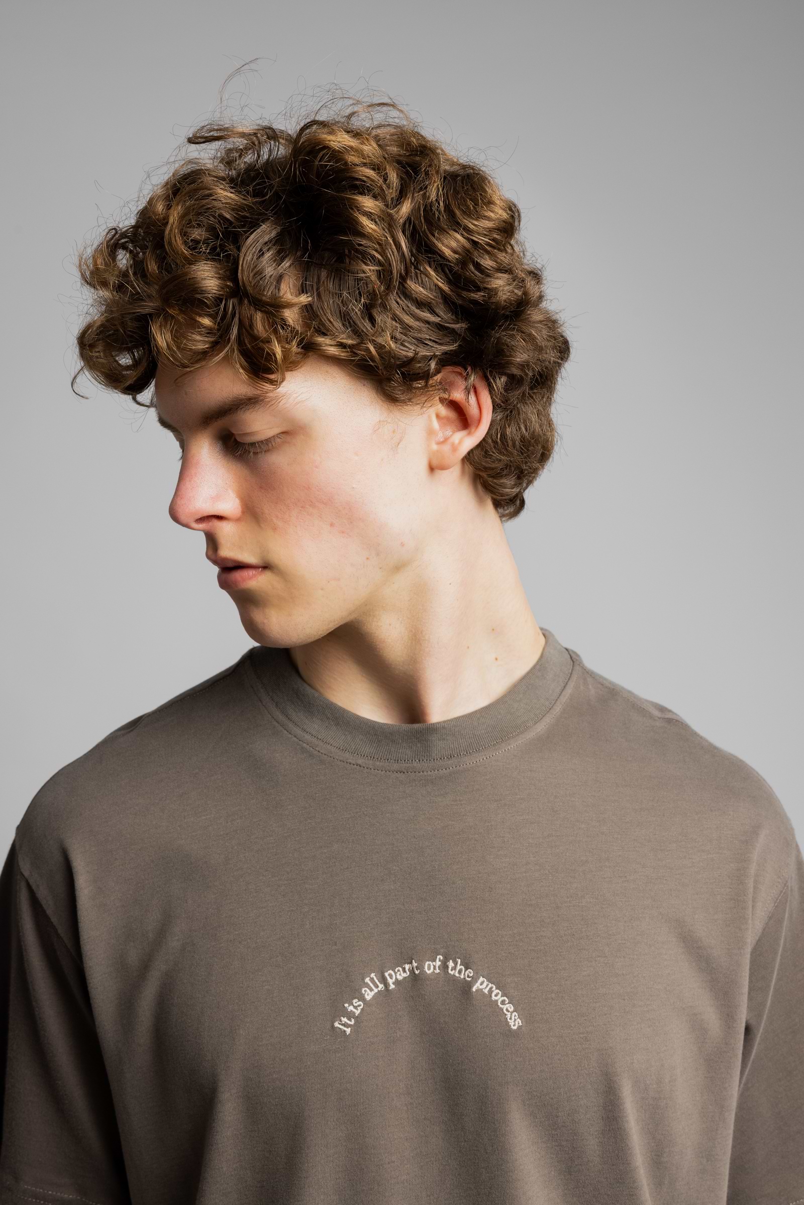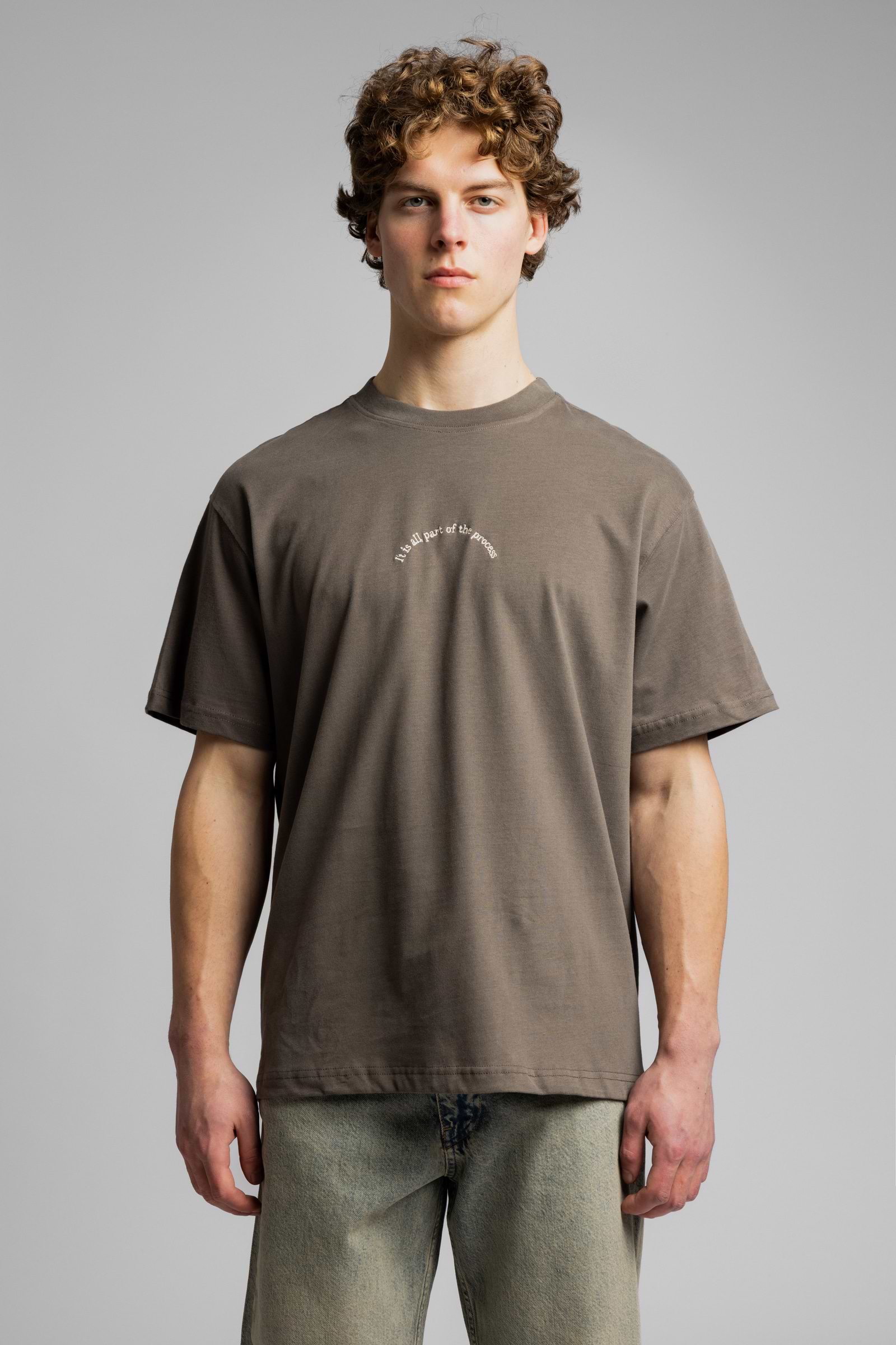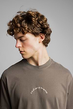 CATCH small logo t shirt חולצה בצבע חום עם רקמה קטנה בחזית ופסים בגב