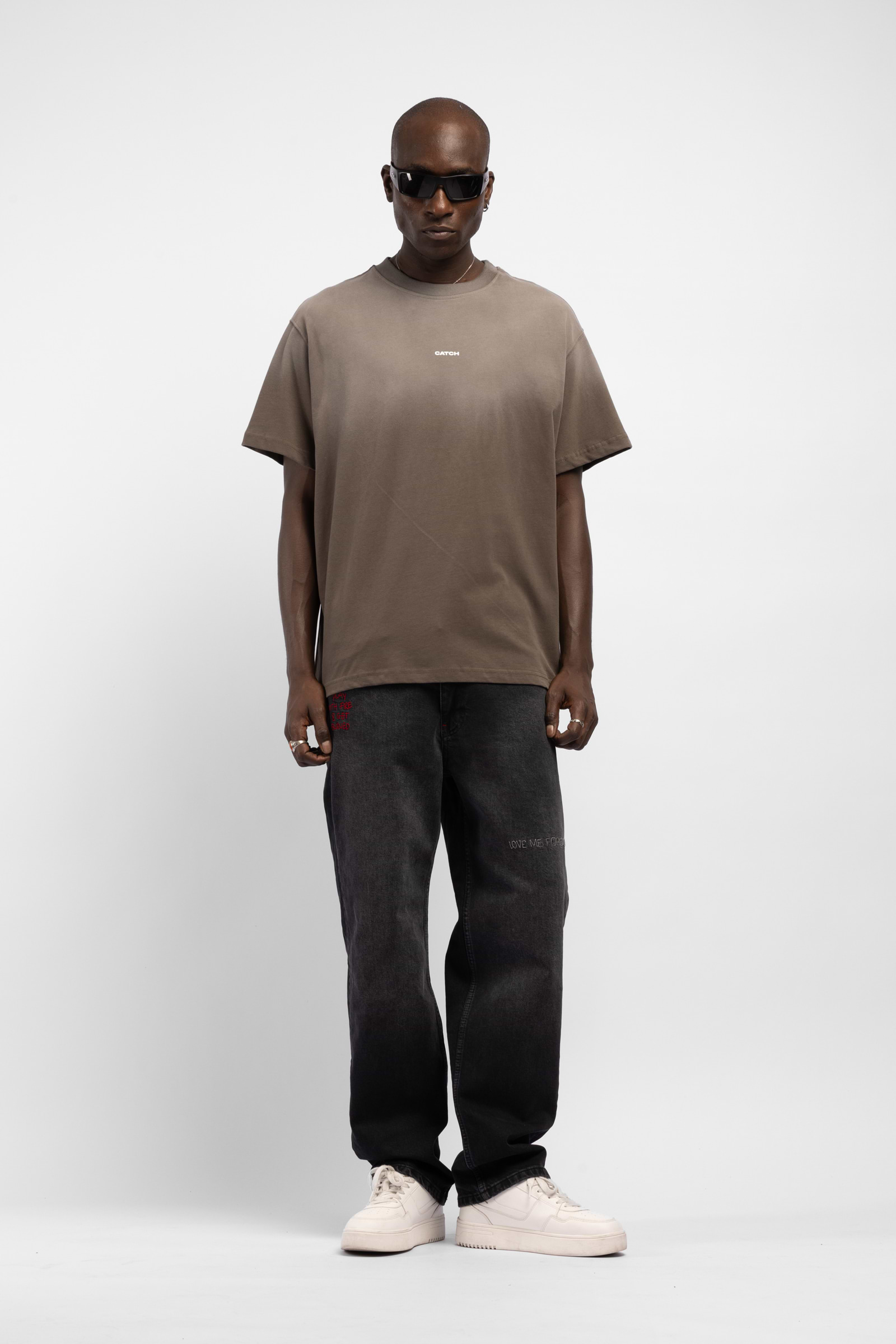 CATCH small logo t shirt חולצה בייסיק בצבע חום טאי דאי לוגו קטן במרכז