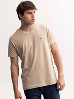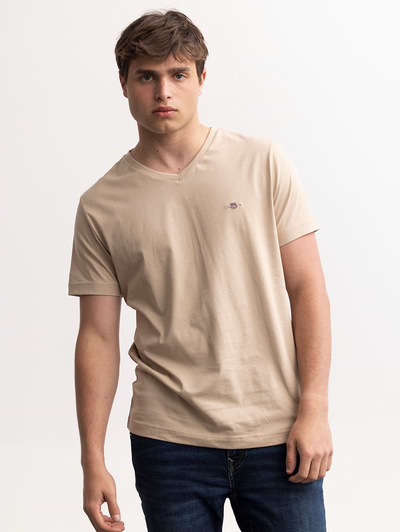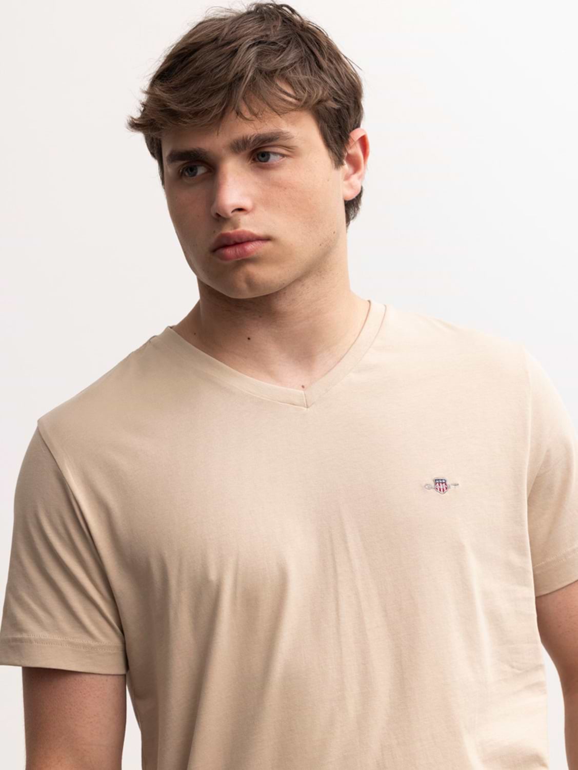 GANT beige t shirt V small logo חולצה בצבע בז’