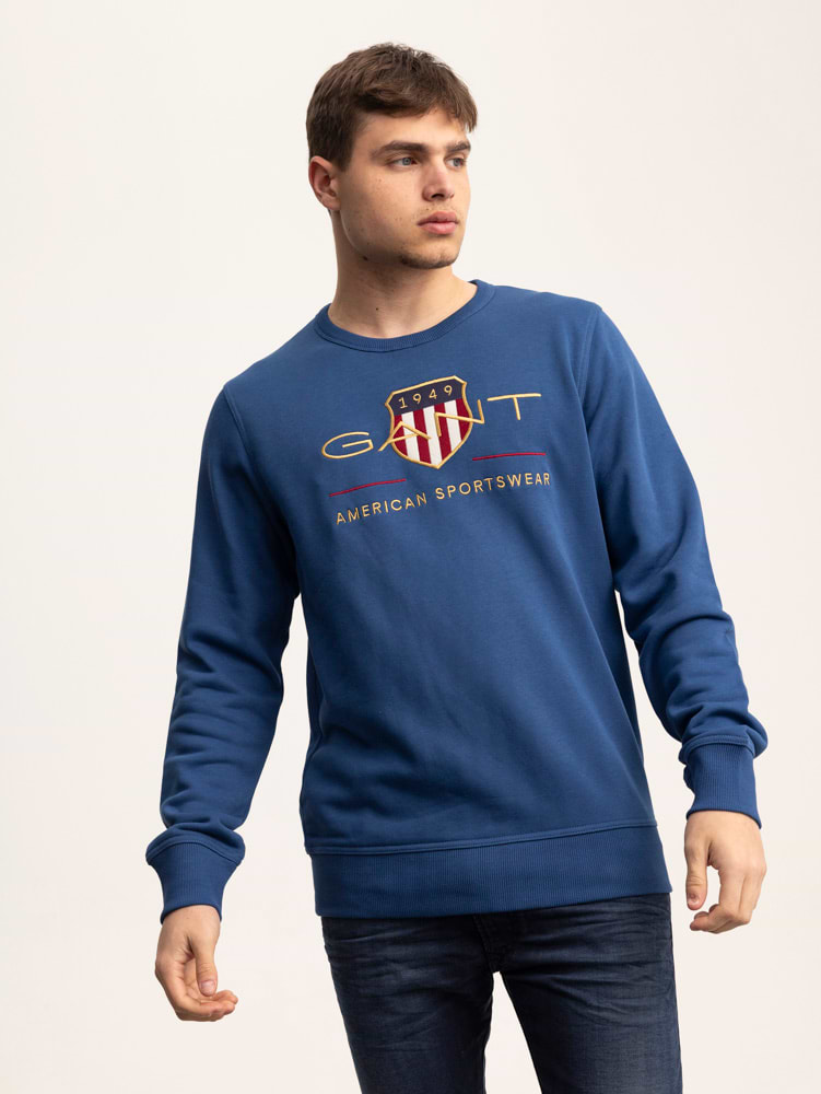 GANT blue gold logo סווטשירט בצבע כחול לוגו זהב