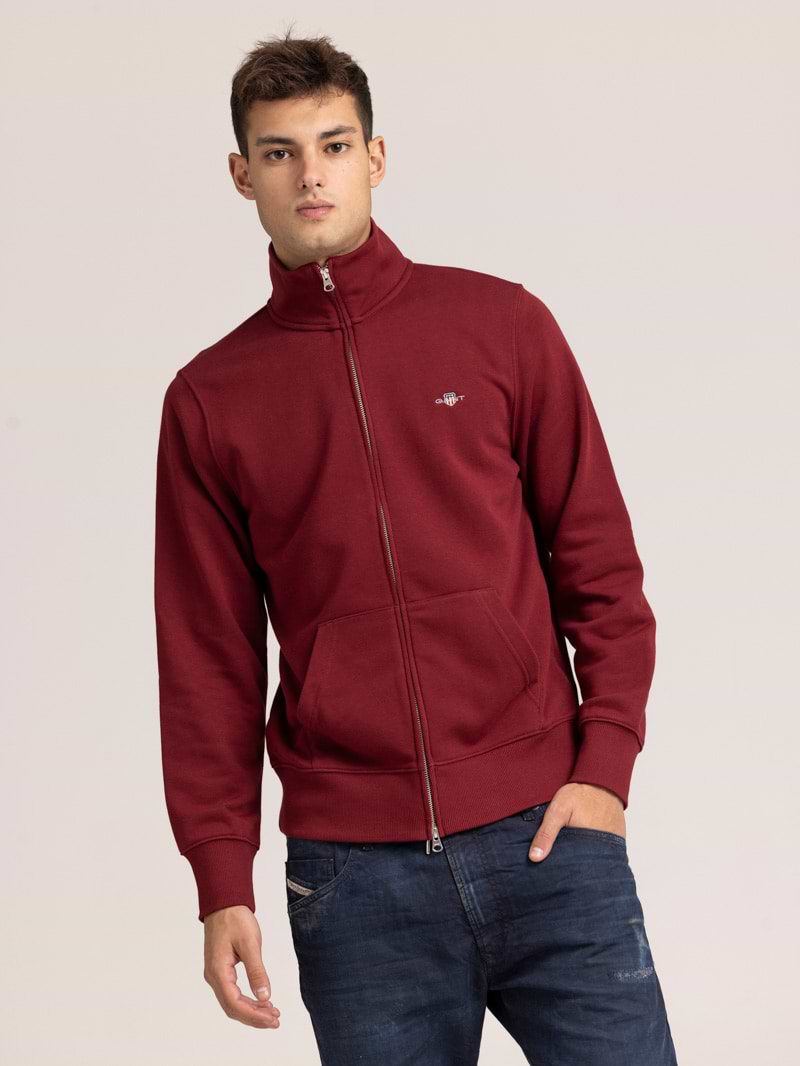 GANT bourduex sweatshirt zip small logo shield גאנט סווטשרט ריצרץ לוגו קטן בצבע בורדו