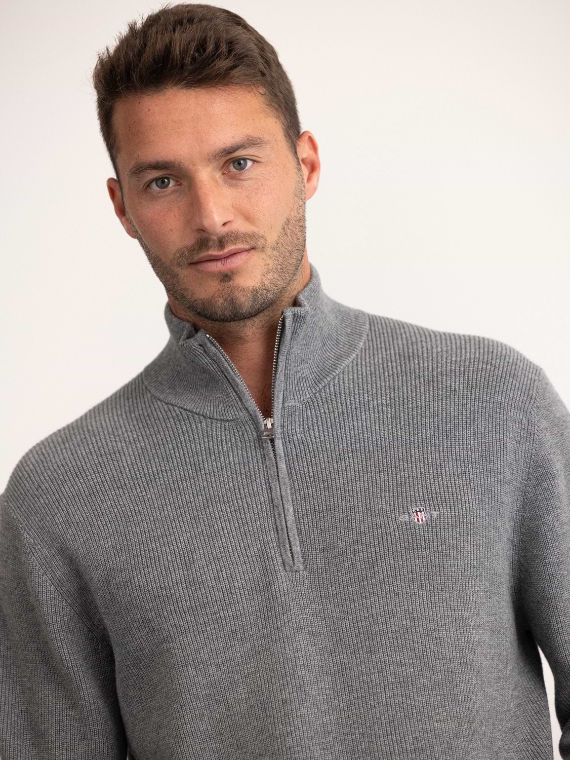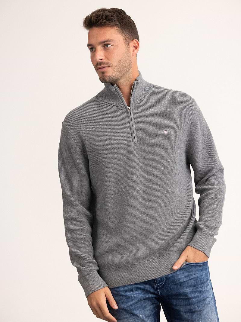 GANT cotton marino ribbed half zip סריג עבה חצי רוכסן עם לוגו צידי בצבע אפור כהה