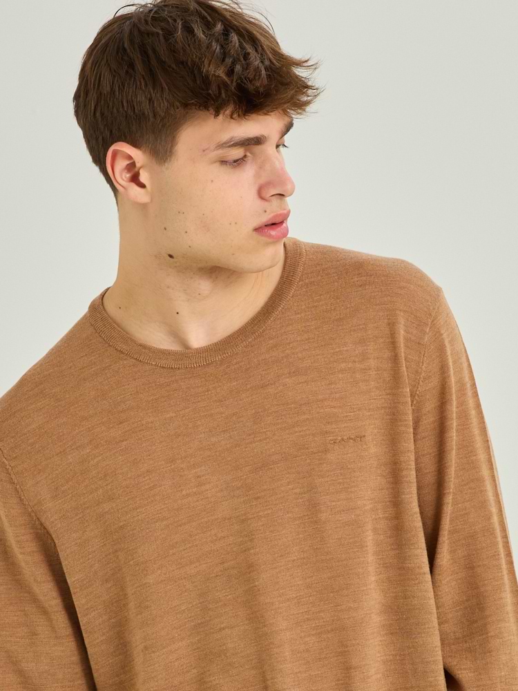 GANT extra fine merino wool brown סריג דק בצבע חום לוגו רקום