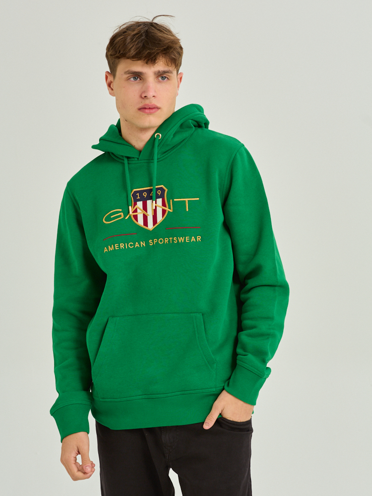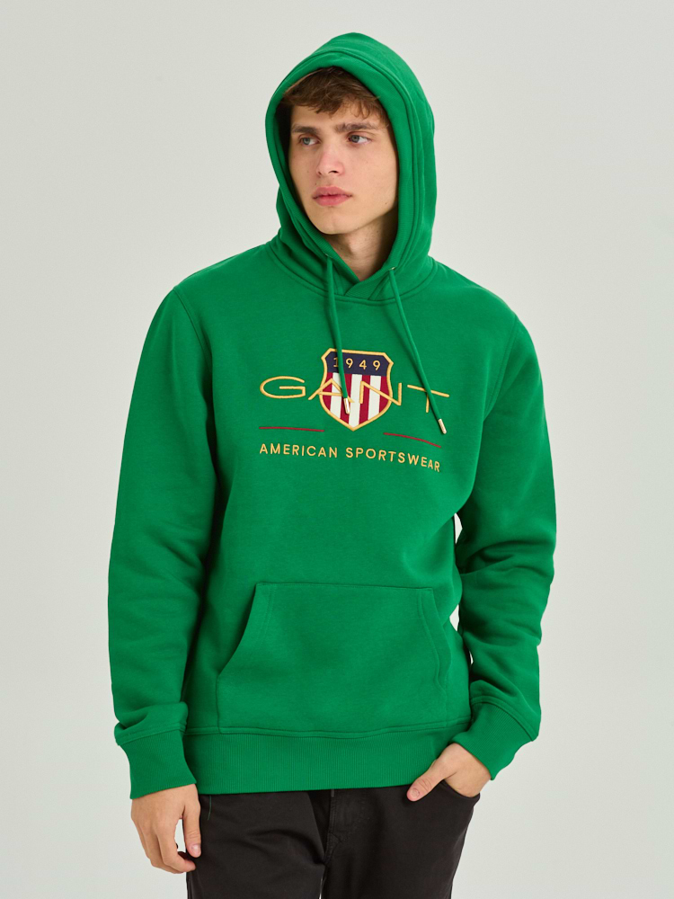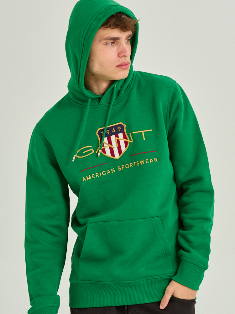 GANT green gold big logo קפוצון בצבע ירוק עם רקמה זהב