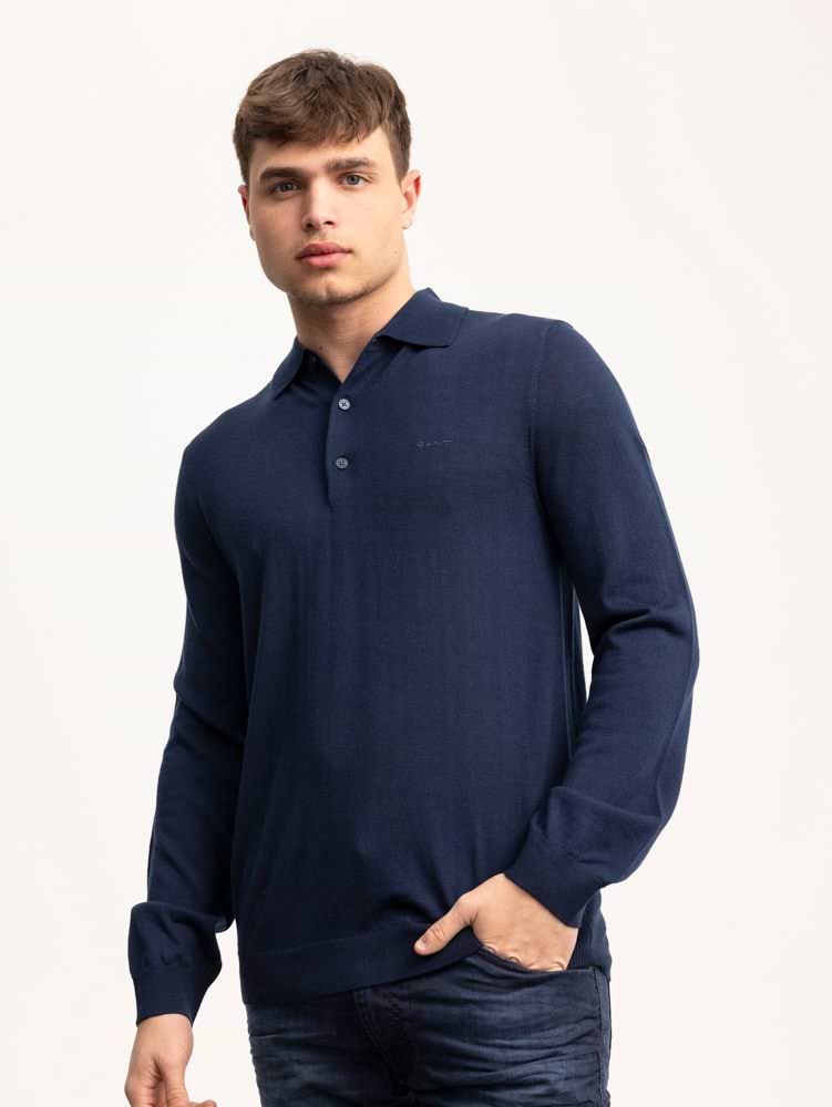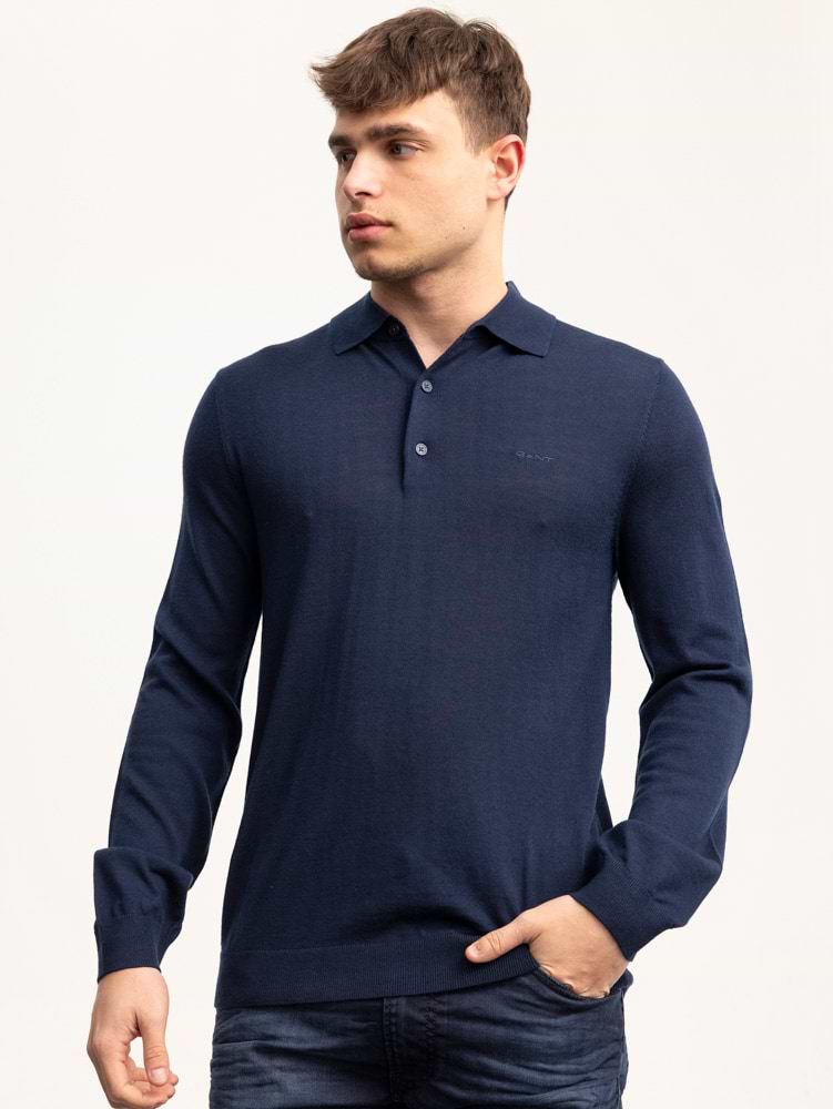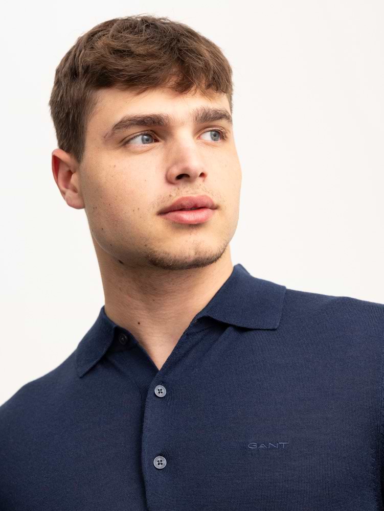 GANT navy bottun knitwear סריג דק בצבע נייבי עם כפתורים וצווארון