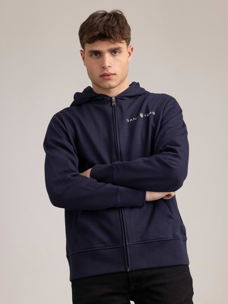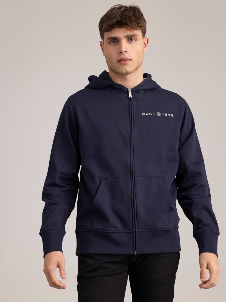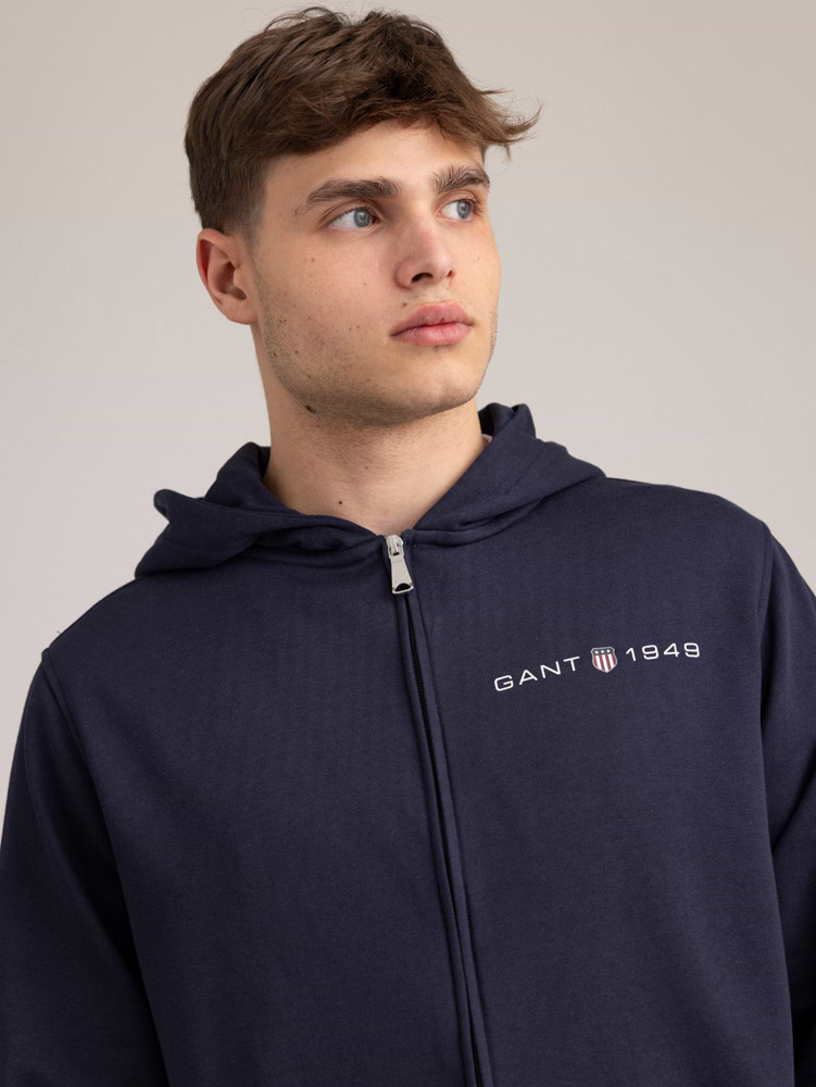 GANT navy small logo zip 1949 hoodie גאנט קפוצון רוכסן צבע נייבי לוגו צידי 1949