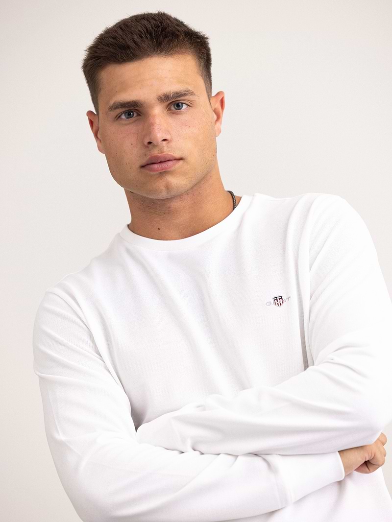 GANT pique t shirt small logo long sleeve חולצת פיקה שרוול ארוך בצבע לבן