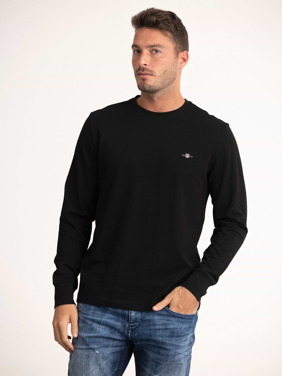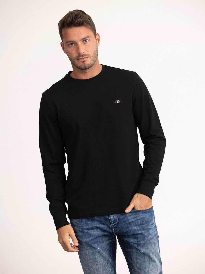 GANT pique t shirt small logo long sleeve חולצת פיקה שרוול ארוך בצבע שחור