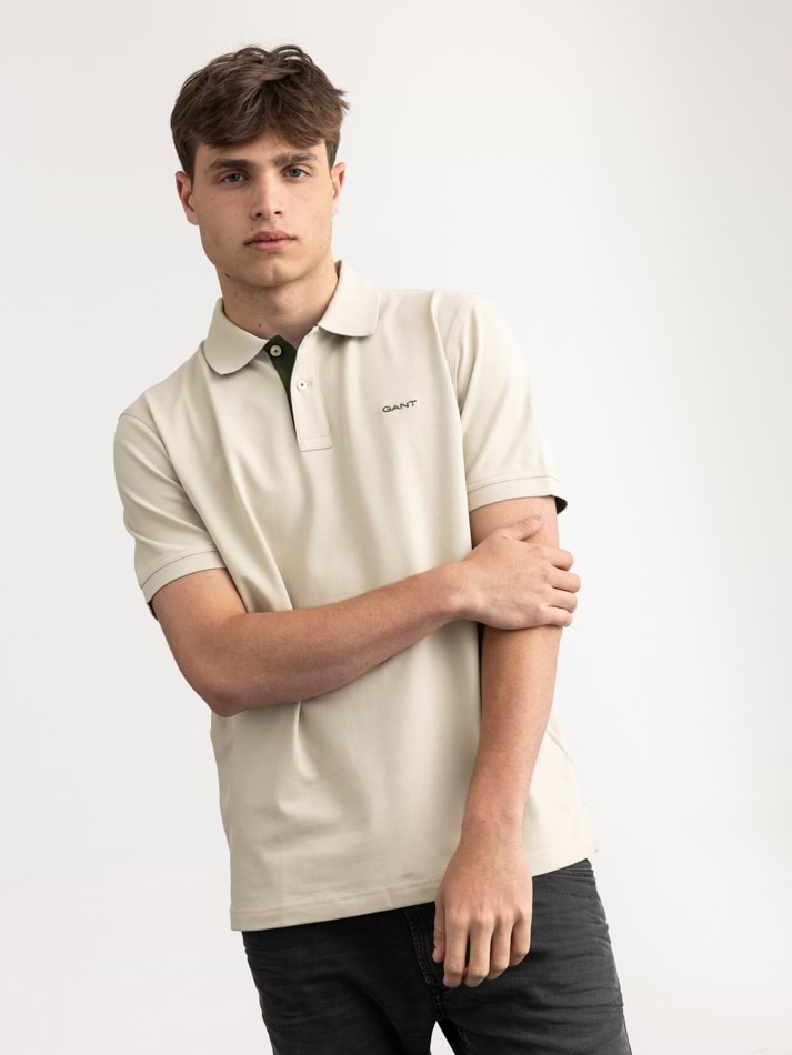 GANT polo contrast beige green חולצת פולו בצבע בז’ עם פס ירוק