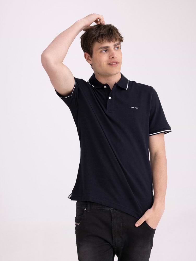 GANT polo navy blue strip small logo חולצת פולו בצבע כחול כהה עם פס בצווארון