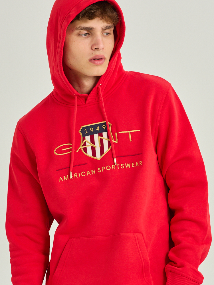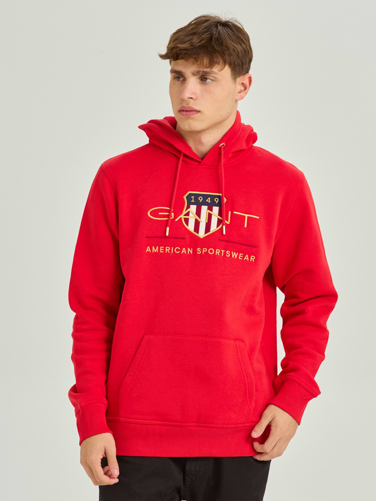 GANT red gold big logo קפוצון בצבע אדום עם רקמה זהב