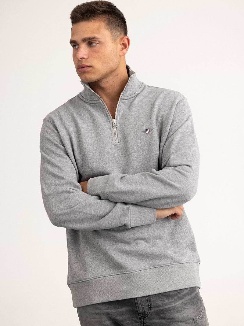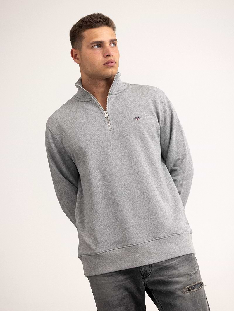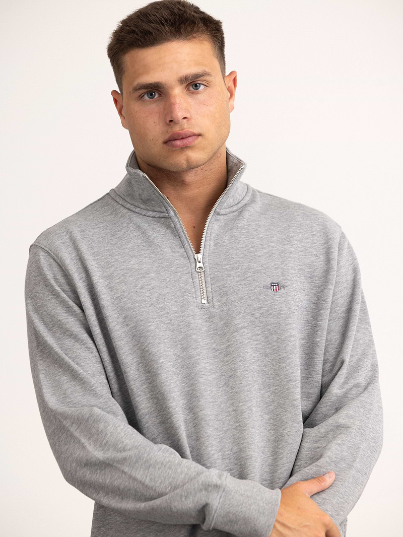 GANT reg half zip sweat פוטר חצי רוכסן עם לוגו צידי בצבע אפור