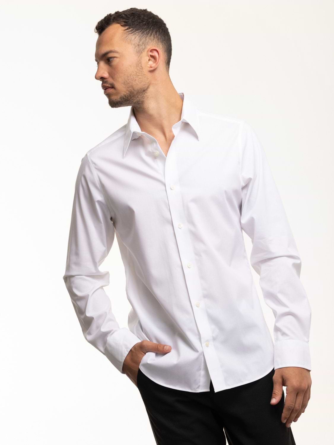 GANT slim strech poplin מכופתרת בצבע לבן ללא לוגו