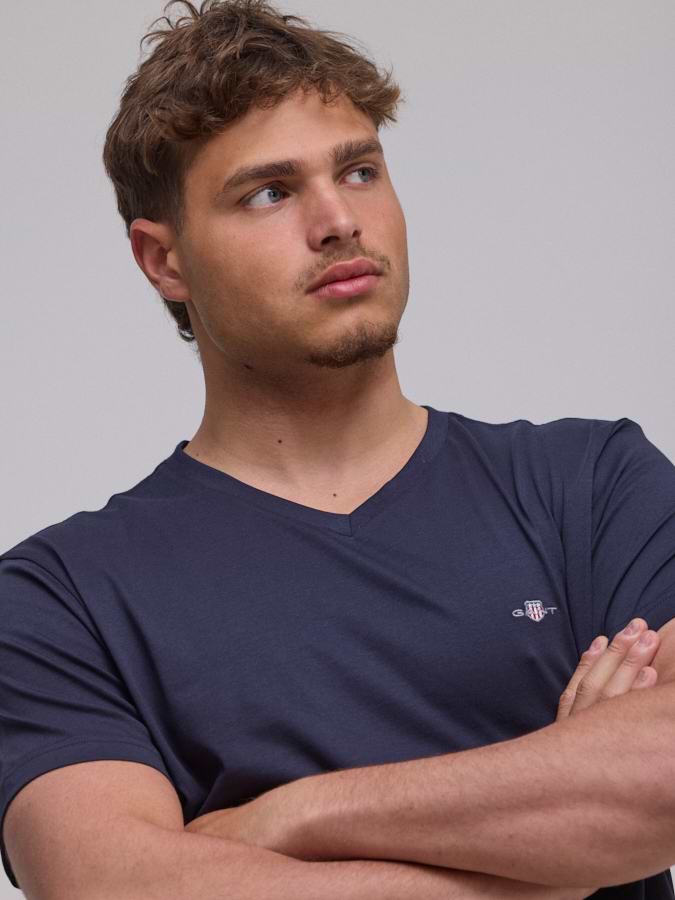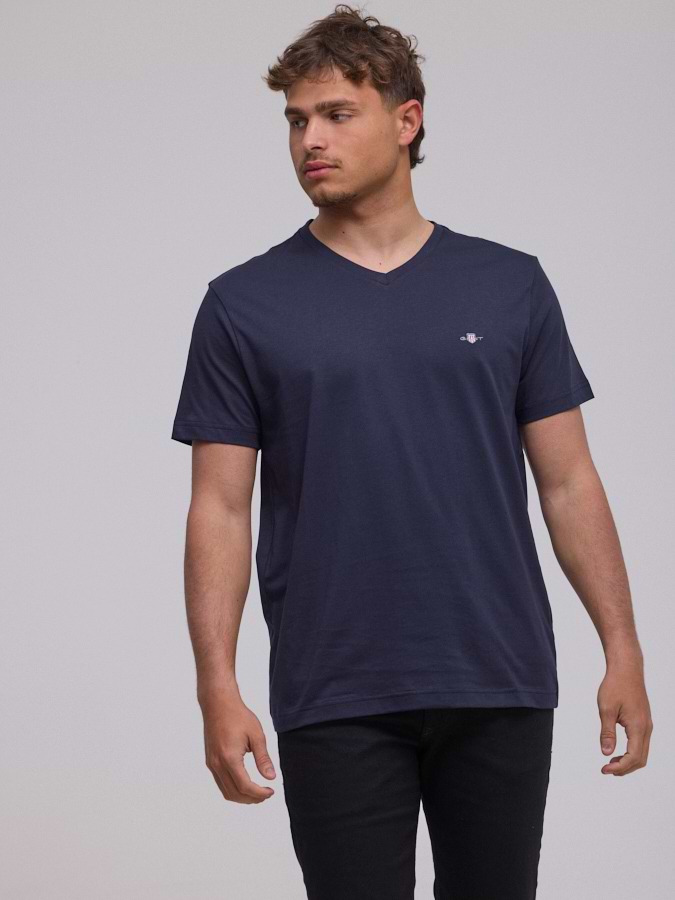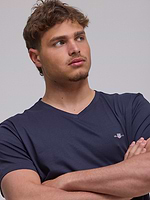 GANT t shirt small logo חולצה בצבע נייבי בגזרת V