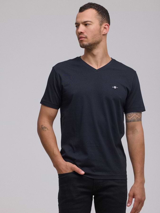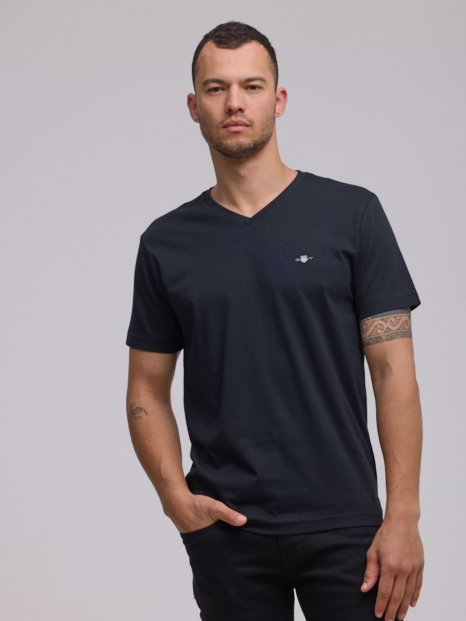 GANT t shirt small logo חולצה בצבע שחור בגזרת V
