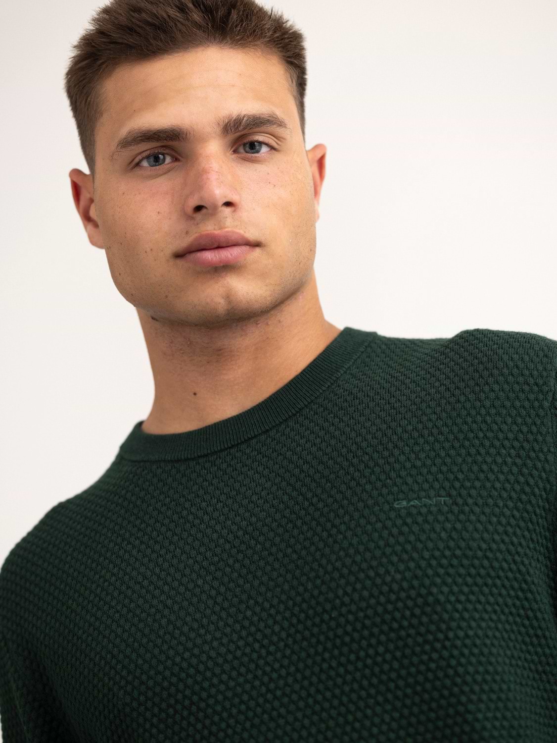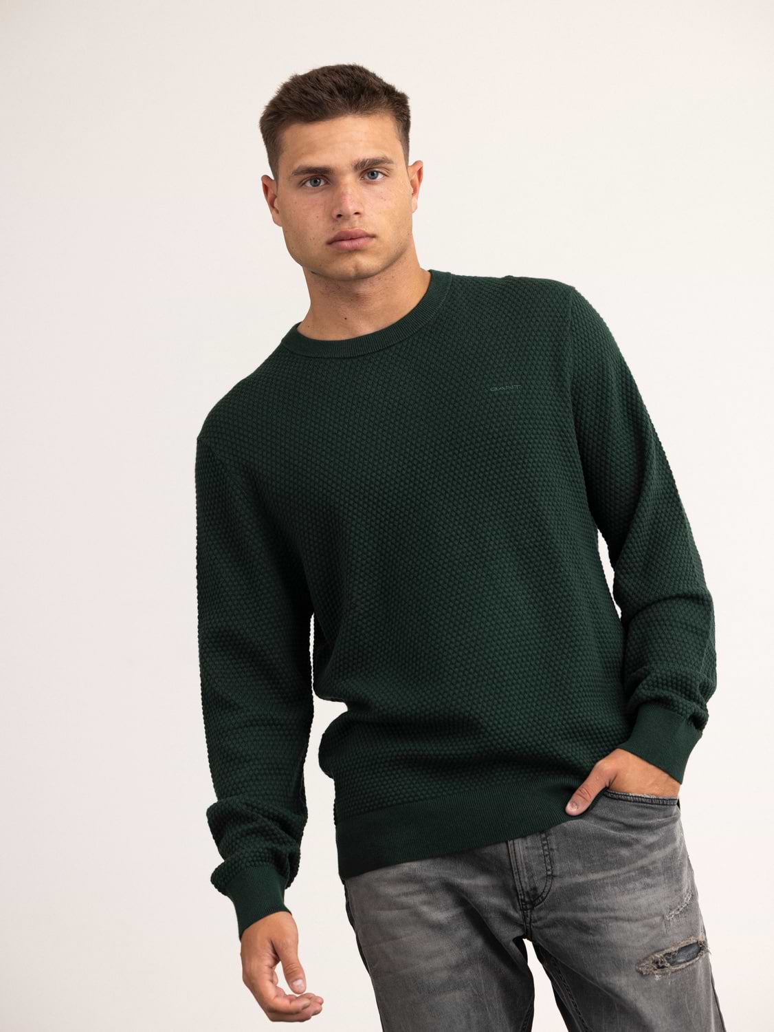 GANT textured cotton marino c-neck סריג עם לוגו קטן טון על טון בצבע ירוק בקבוק