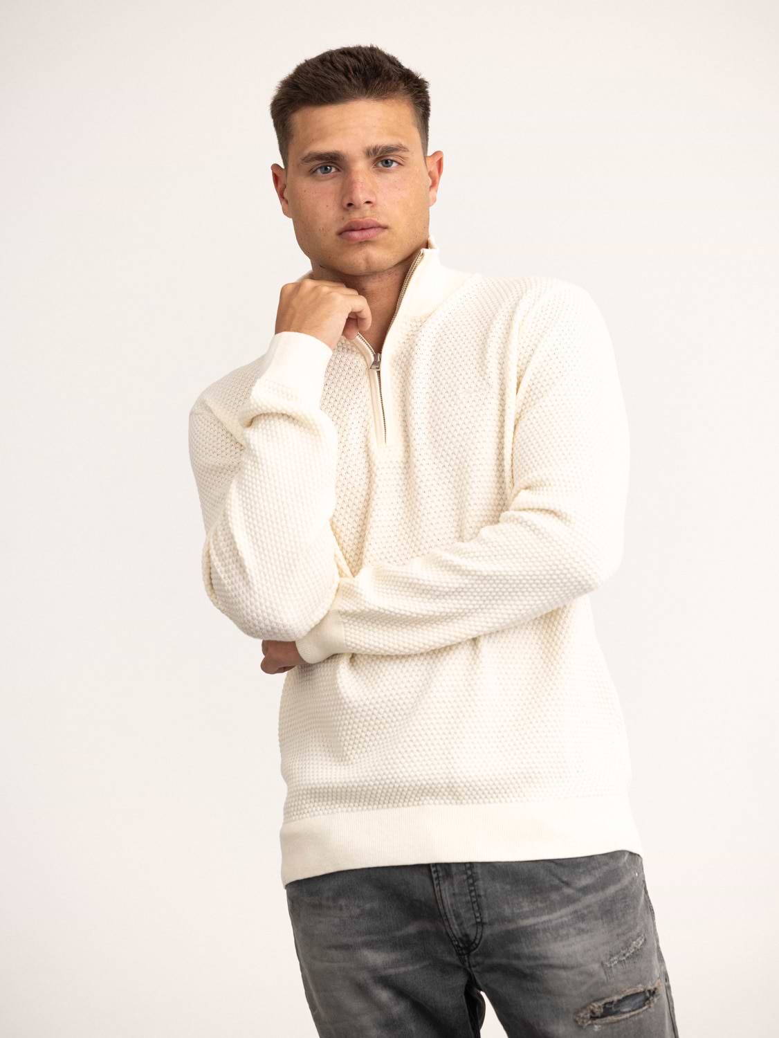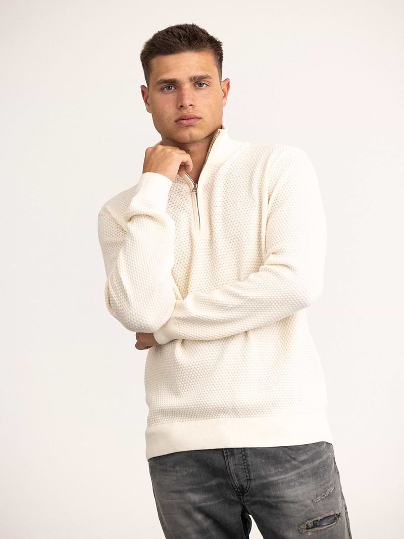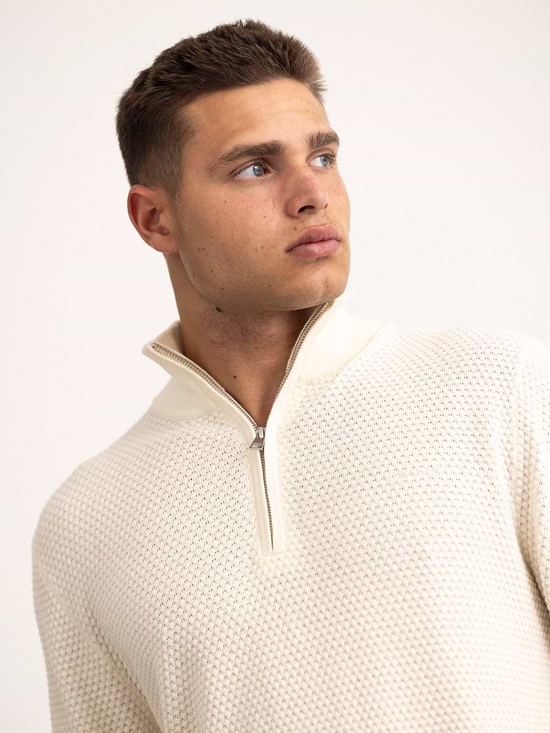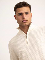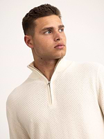 GANT textured cotton marino half zip סריג טקסטורה חצי רוכסן עם לוגו טון על טון בצבע קרם