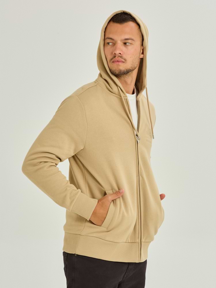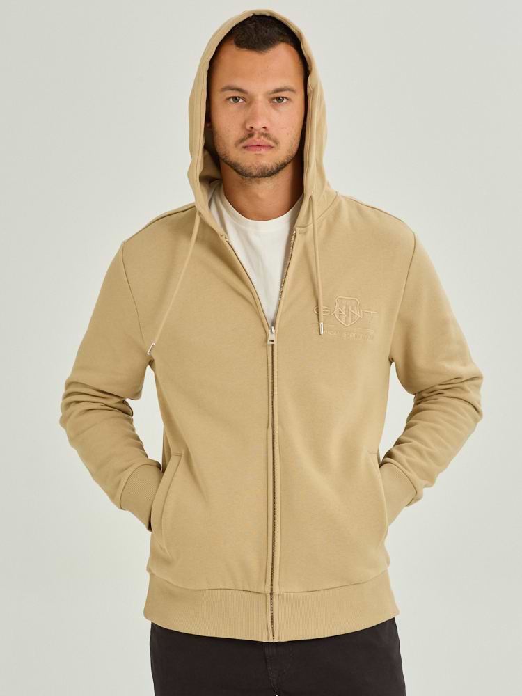 GANT tonal shield full zip hoodie גאנט קפוצון בז' ריצרץ לוגו צידי טון על טון