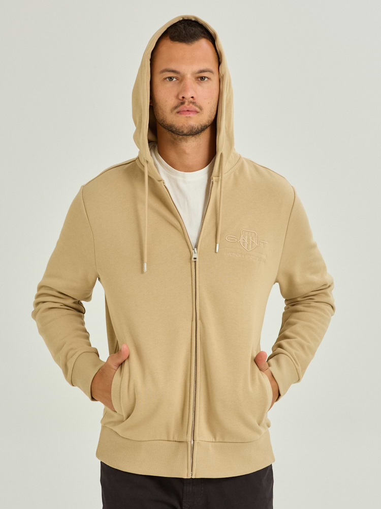 GANT tonal shield full zip hoodie גאנט קפוצון בז’ ריצרץ לוגו צידי טון על טון