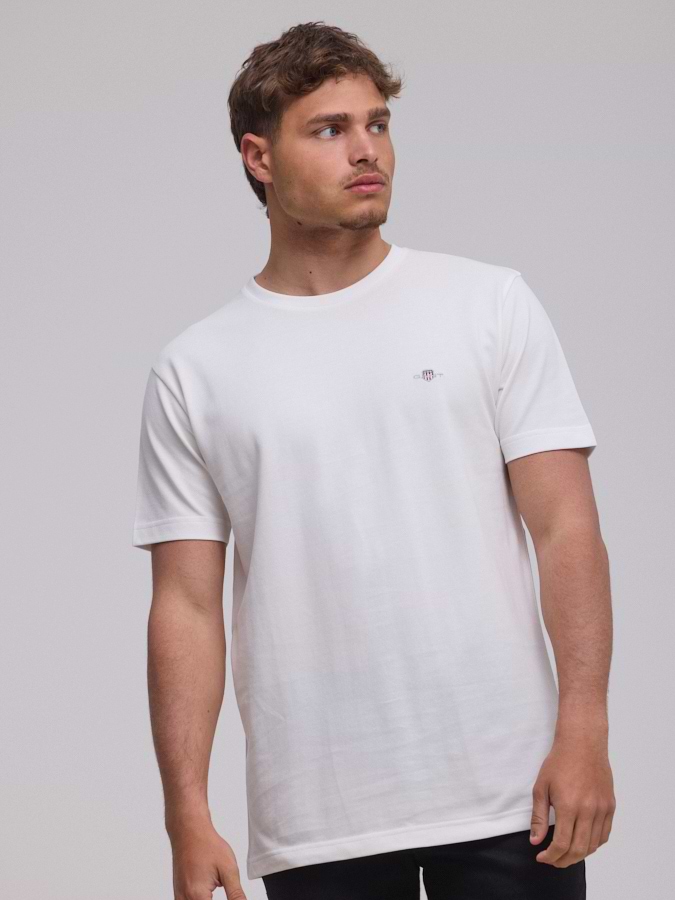 GANT white pique t shirt small logo חולצת פיקה בצבע לבן